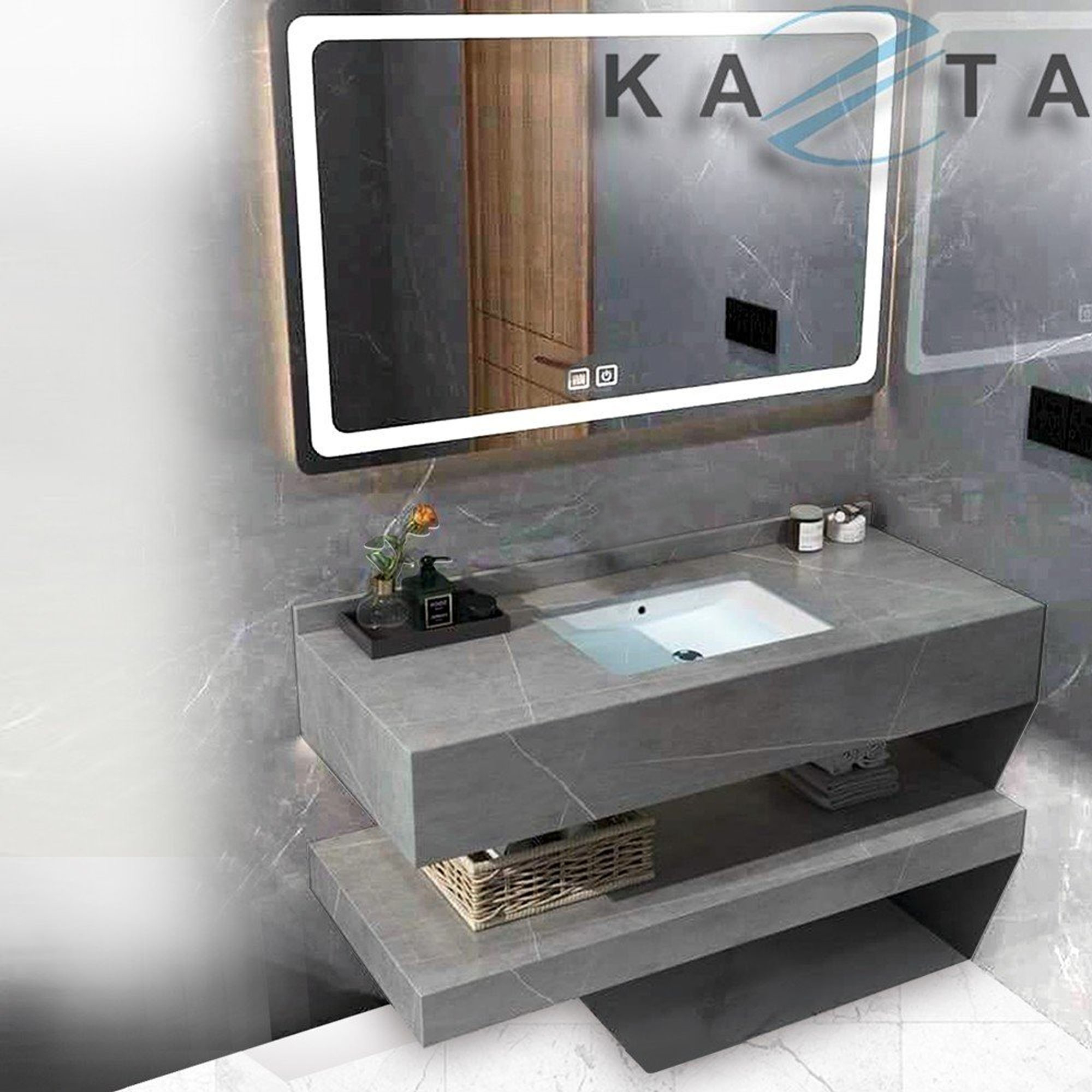Món 4, 5: Bộ lavabo âm và bàn đá 2 tầng treo tường Kazta màu xám