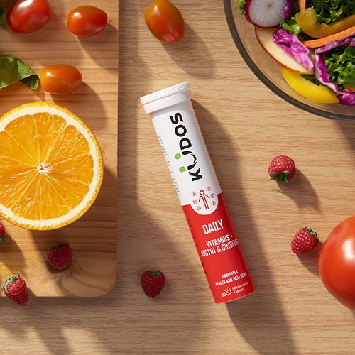 - Viên sủi KUDOS DAILY VITAMINS PLUS BIOTIN & GINSENG Bổ sung vitamin (A, C, D3, E, B1, B2, B3, B5, B6, B8, B9, B12) cho cơ thể.