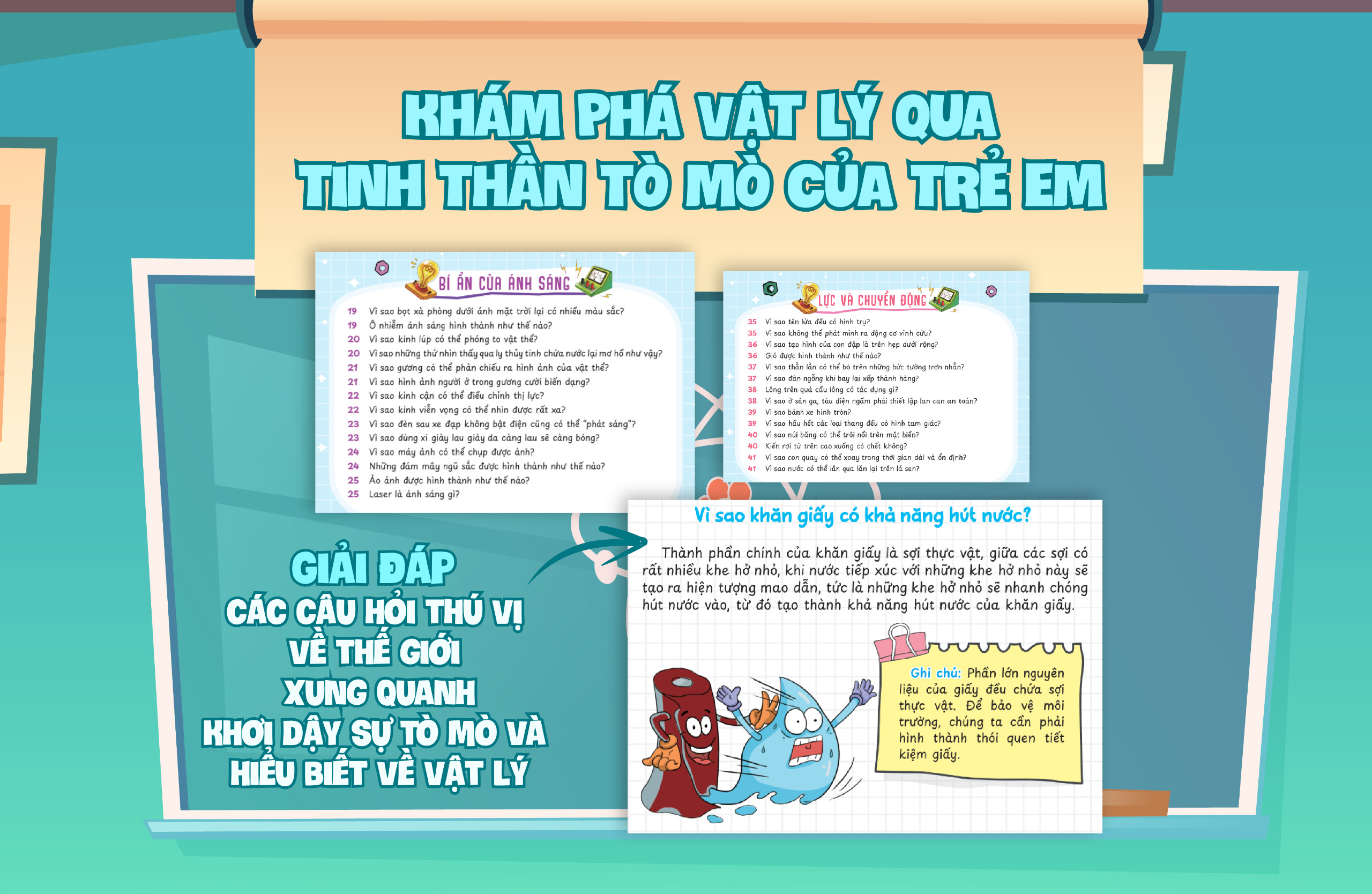 Bộ sách tuyển chọn câu hỏi mà trẻ em tò mò nhất với tiêu trí thú vị , thần kỳ , mới mẻ , đặc sắc . Trong cuốn sách có lời giải thích khoa
