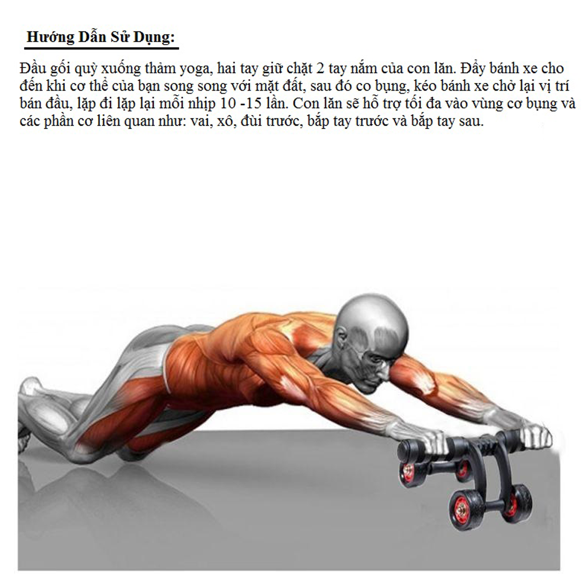 Giới thiệu sản phẩm :Con lăn tập cơ bụng 4 bánh Con lăn tập cơ bụng 4 bánh được thiết kế từ nhựa ABS chịu lực siêu bền và bánh xe bọc PVC tăng cường