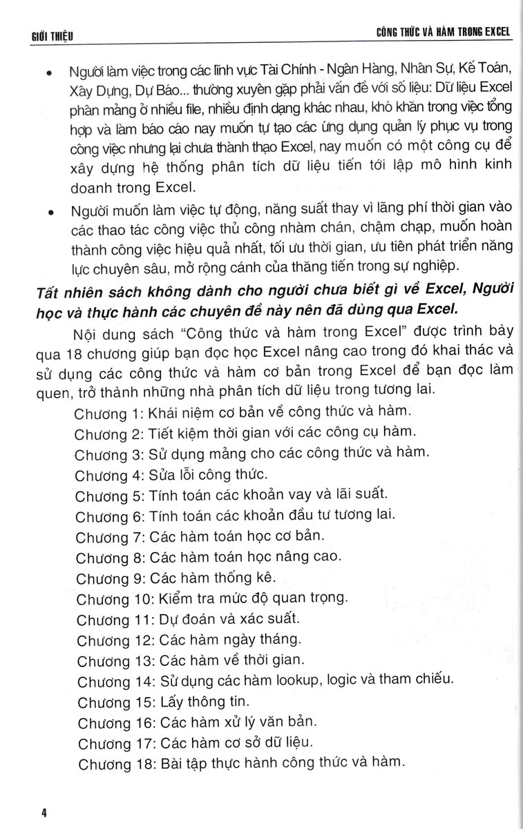 Excel Dành Cho Người Bắt Đầu Sách trình bày qua 14 chương với các hướng dẫn từng bước giúp các bạn tiết kiệm thời gian cũng như đạt năng suất hơn khi làm việc với
