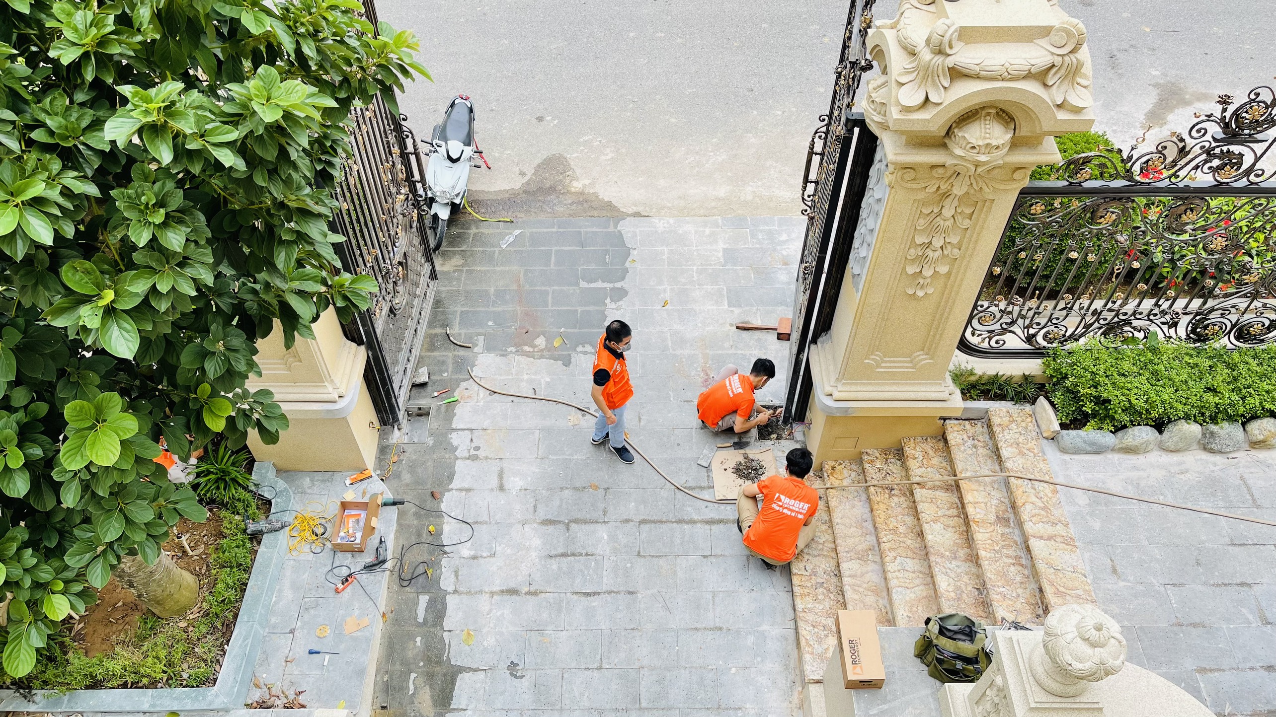 Cổng mở tự động âm sàn Roger Italia lắp đặt cho cổng biệt thự