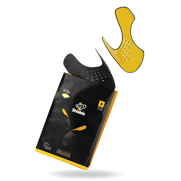 Khiên bảo vệ mũi giày Crep Protect Sneaker Shield giúp mũi giày không gãy, không nhăn, không móp méo dành cho giày da, da lộn hoặc giày vải. Phù hợp dùng cho nhưng mẫu giày Jordan, Stansmith, SuperStar, Gucci… Khi để khiên Crep Protect Sneaker Shield vào mũi giày dù mang đi hay không mang đi đều giúp nâng mũi giày cố định không gãy mũi hay nhăn nữa. Một số thông tin về Crep Protect Sneaker Shield: - Một túi có 1 cặp giữ được 1 đôi giày. - Có size để lựa chọn: S (Size giày 35-40.5),. - Làm bằng gel cao cấp nên mềm mại khi chân tiếp xúc. - Được thiết kế làm bằng 2 lớp nên bảo vệ mũi chắc chắn. - Khiên có mùi thơm và có thêm chức năng khử mùi hôi cho giày. - Có thiết kế những lổ nhỏ trên khiên giúp thoát hơi trong giày ra ngoài dễ dàng. - Cách để khiên đúng là phần lỏm trên khiên được đặt ngay ngón chân cái. - Dễ sử dụng và phù hợp cho mọi loại giày.
