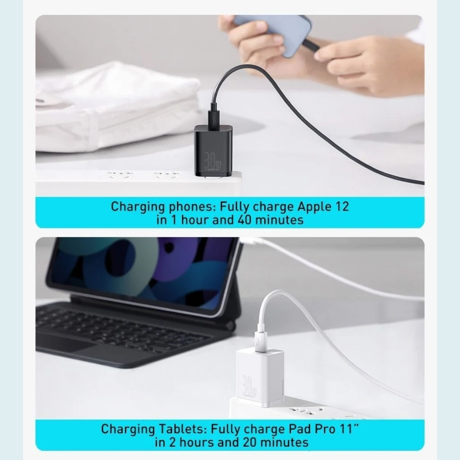 Củ sạc siêu nhanh USB C 30W Baseus GaN3 Fast Charger cho iPhone 13,12 Pro Max QC4.0 cho điện thoại Samsung Xiaomi - Công nghệ GaN giúp thu nhỏ kích cỡ của các loại sạc