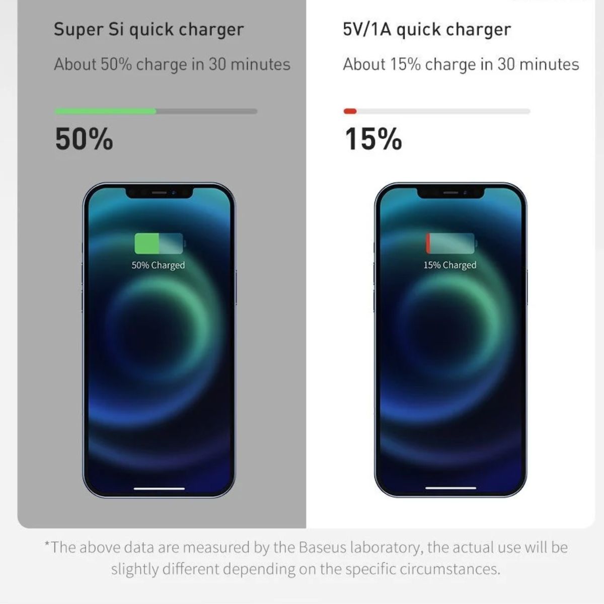 Cốc sạc 20W Baseus Super Si chân dẹt 1 cổng Type-C thiết kế nhỏ gọn - Hàng chính hãng Nhờ được trang bị công nghệ bán dẫn Super Si nên có thể hỗ trợ