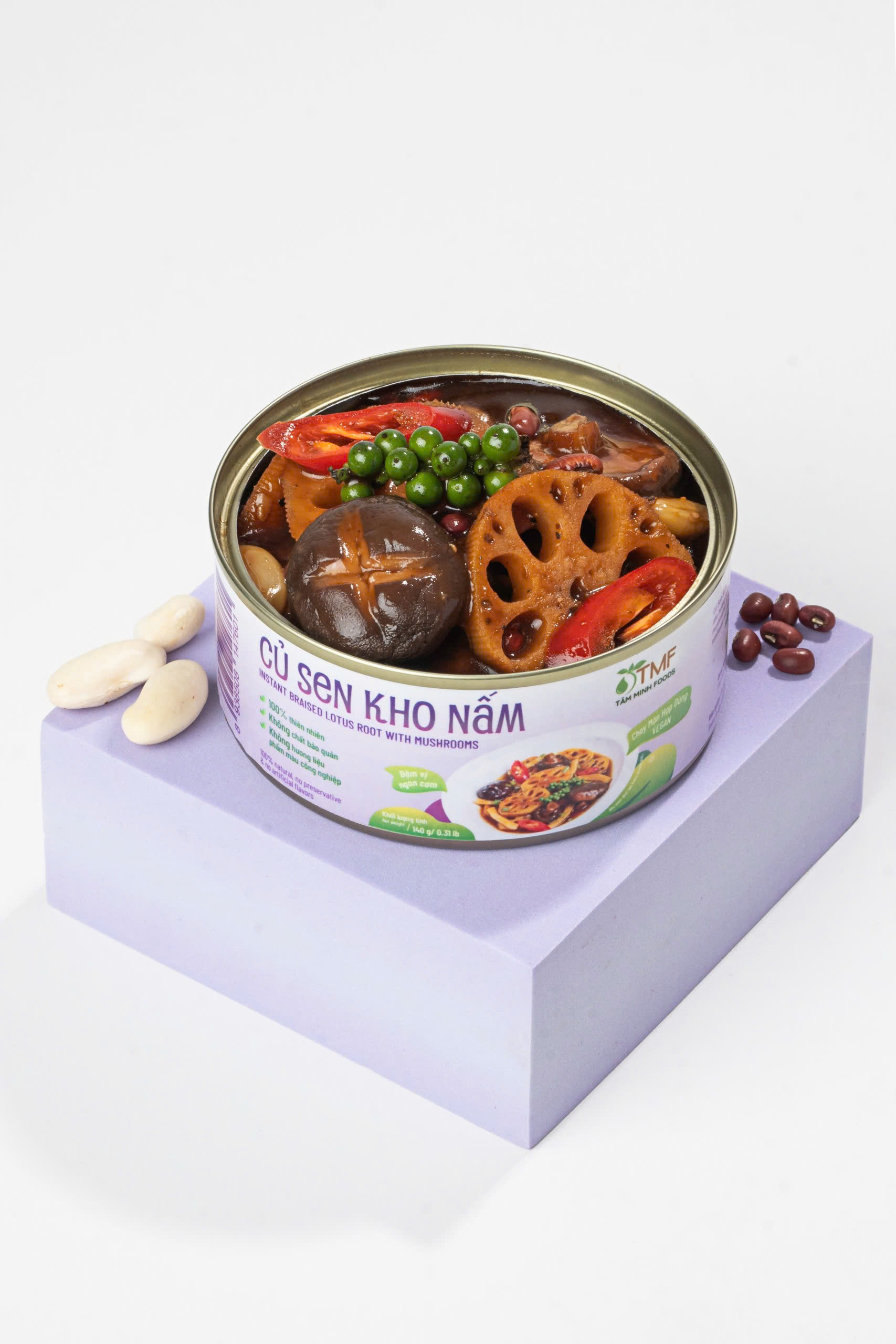 Củ sen kho nấm của Tâm Minh Foods là món ăn giàu dinh dưỡng, kết hợp củ sen giòn ngọt và nấm thơm tự nhiên. Sản phẩm cung cấp nhiều chất xơ, vitamin B, và khoáng chất giúp tăng cường sức khỏe tim mạch, hỗ trợ hệ tiêu hóa và mang lại cảm giác thanh nhẹ. Củ sen kho nấm là lựa chọn lý tưởng cho bữa ăn tiện lợi mà vẫn đảm bảo dinh dưỡng và hương vị thuần tự nhiên.