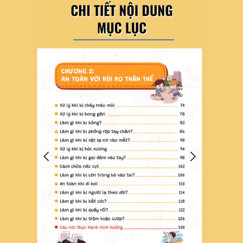 - Tổng hợp 56 tình huống, vấn đề các con thường xuyên gặp phải trong cuộc sống với nội dung đã được kiểm chứng bởi chương trình phòng chống thương tích trẻ em.