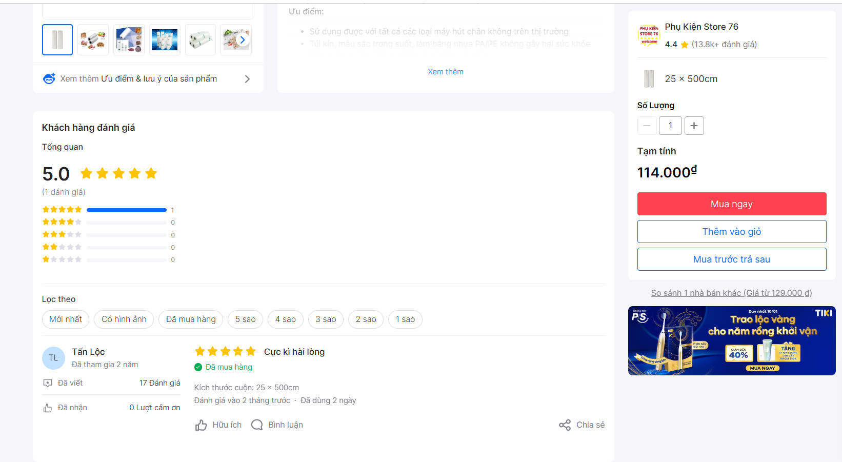 1 cuộn dài 5 mét, với chiều ngang túi cố định theo từng kích thước.