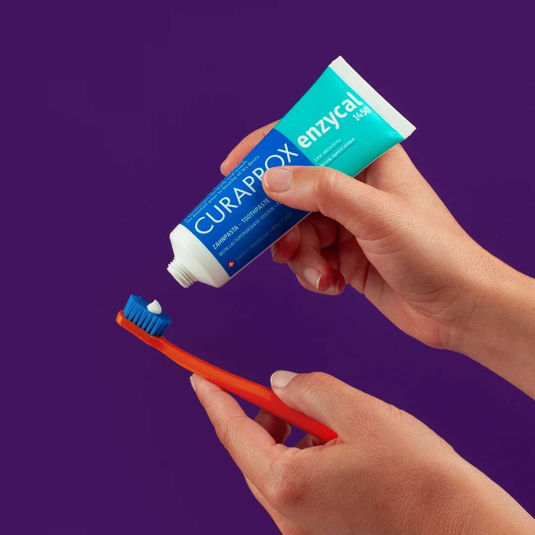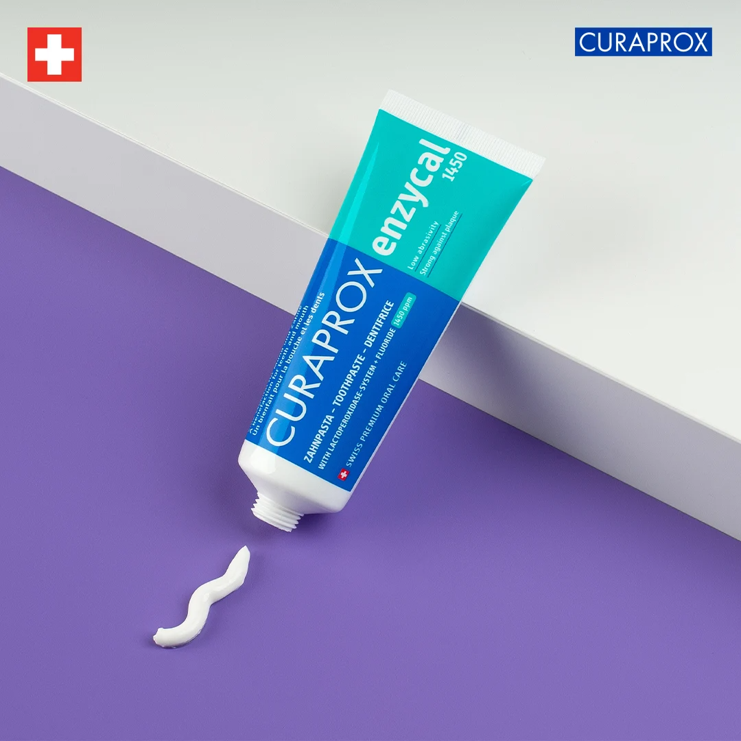 Kem đánh răng Curaprox Enzycal 1450 (có chứa fluoride) – 75ml Tăng cường bảo vệ răng miệng tự nhiên – Nhẹ dịu nhưng hiệu quả vượt trội Giải phóng sức mạnh của nước bọt với