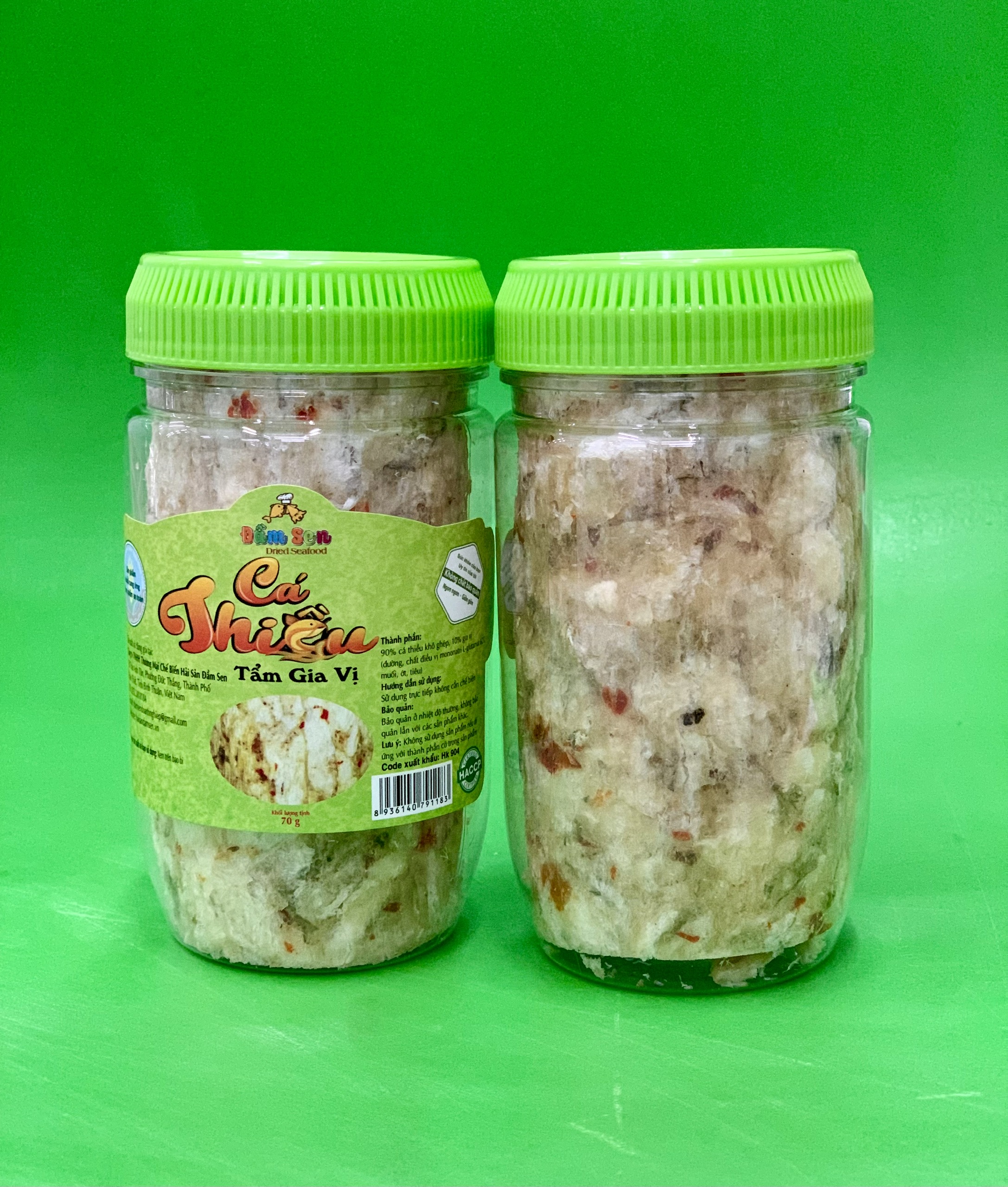 Mua tại TiktokThành phần: 90% cá Thiều khô ghép, 10% gia vị (muối, đường, bột ngọt, tiêu, ớt) Hạn sử dụng: 12 tháng kể từ ngày sản xuất Hướng dẫn sử dụng: Sử dụng trực tiếp không cần chế biến. Hướng dẫn bảo quản: Bảo quản ở nhiệt độ thường, không bảo quản lẫn với các sản phẩm khác Lưu ý: Không sử dụng sản phẩm nếu dị ứng với thành phần có trong sản phẩm