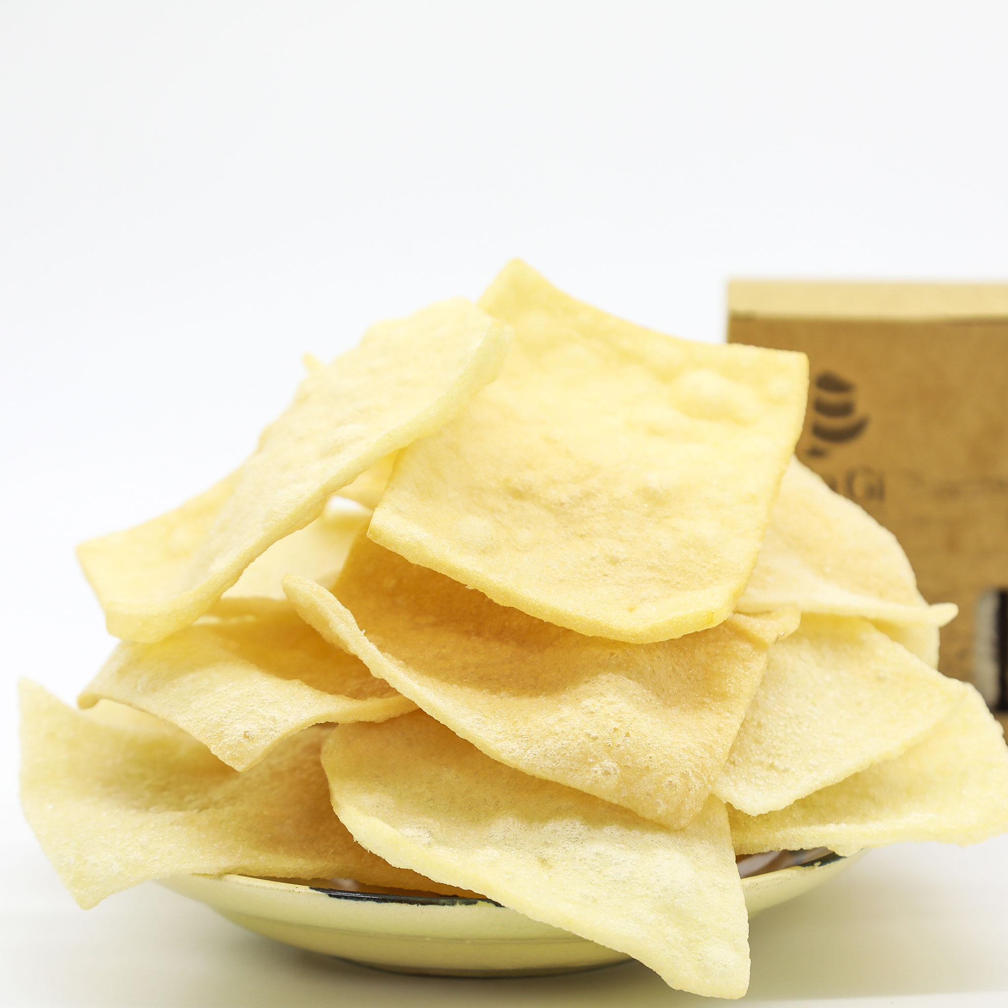 Bánh phồng khoai môn (khoai sọ) là sự lựa chọn tuyệt vời cho tín đồ bánh phồng tôm trong quá trình ăn chay, vị tươi của trái cây làm món bánh phồng vừa có thể ăn chay vừa đỡ ngấy.