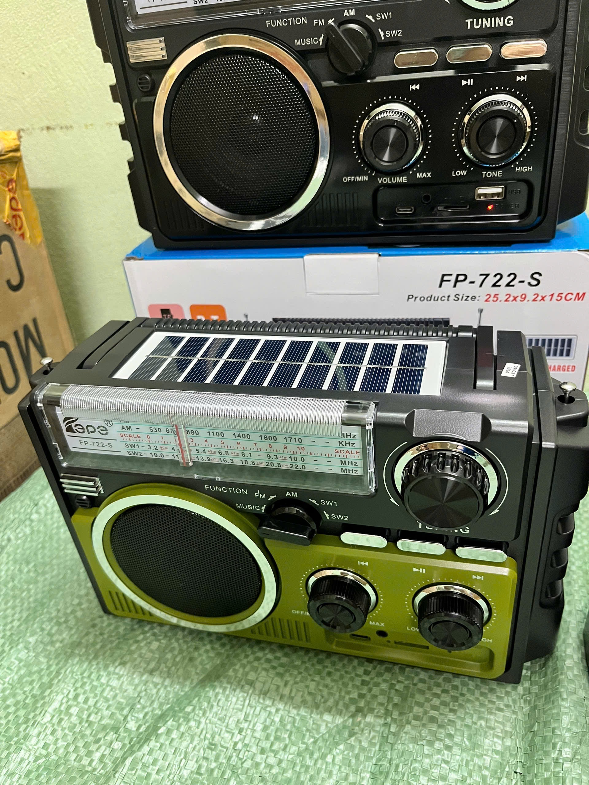Thông tin kỹ thuật Sản Phẩm Đài FM Radio Bluetooth Năng Lượng Mặt Trời FP-722-S - Hãng : Fepe - Model: Fp-722-S - Radio 3 Bands AM / FM / SW - Tích