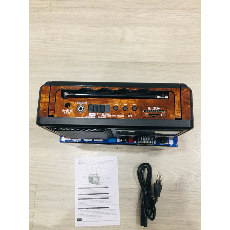 - Đài DC9999AC kiểu dáng nhỏ gọn, cung cấp cho người nghe những thông tin bổ ích nhất từ sóng radio.hỗ trợ nghe nhac mp3 chất lượng bằng usb và thẻ nhớ cắm trực tiếp. -KẾT NỐI bluetoothKết nối với các thiết bị công nghệ sử dụng hệ điều hành Android, IOS và WindowThiết bị hỗ trợ cổng kết nối USB, AUX - Tai nghe 3.5 Thiết bị được sạc Pin qua cổng USB, có thể kết nối với máy tính xách tay, máy bàn hoặc trực tiếp vào nguồn điện.Mỗi lần sạc đầy có thể sử dụng được 6-8 giờ liên tục Âm thanh hay rõ ràng dễ sử dụng phù hợp với những người cao tuổi mang lại những giá trị bổ ý cho người dùng...