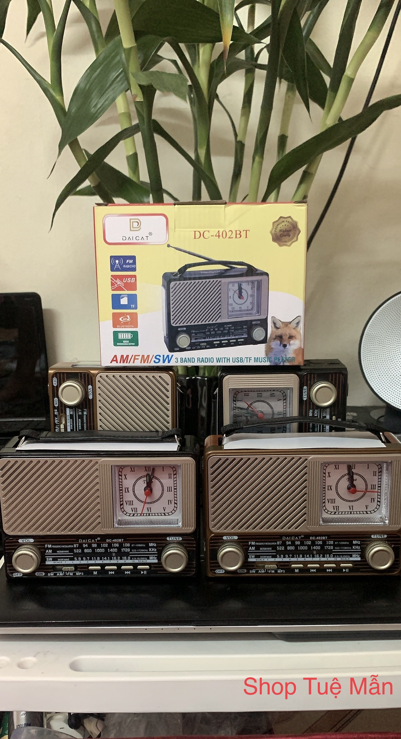 Chức năng : Thu đài FM/AM/SW, Phát nhạc thẻ nhớ, Đèn pin, Đồng Hồ