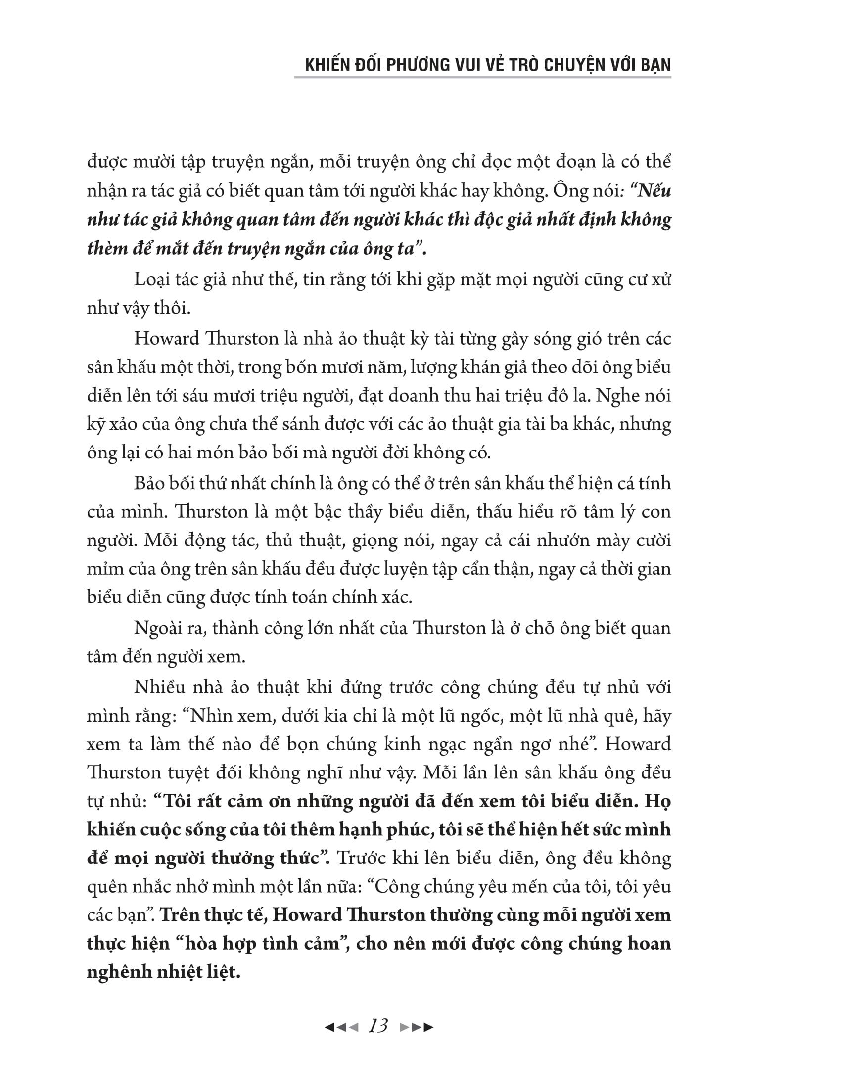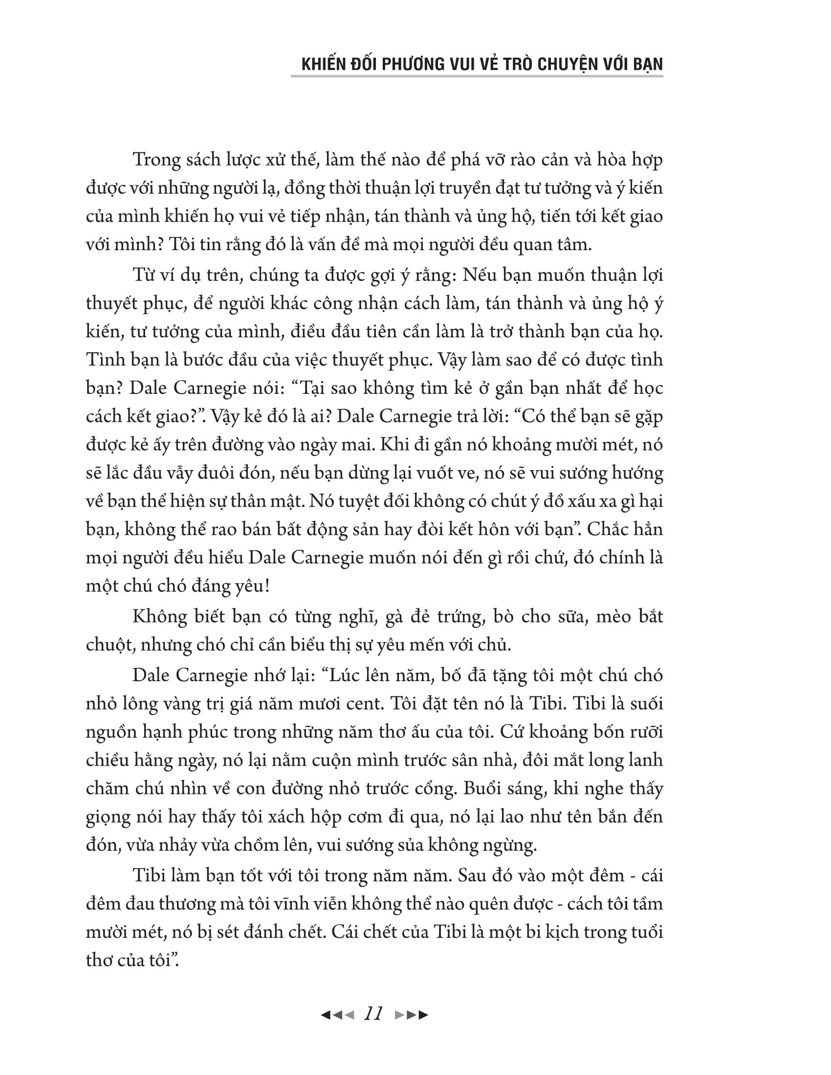 Nghệ thuật và tài năng kinh doanh xuất chúng của ông khiến mỗi một thành công đều khiến nhân loại hướng về. Dale Carnegie trở thành biểu tượng của chủ nghĩa hoàn mỹ trong giới quản lý trên thế giới, nhận được sự sùng bái và ngưỡng mộ của nhân loại. Dale Carnegie còn là một bậc thầy về ngôn ngữ. Trong thời đại internet hiện nay, phương thức quan hệ quốc tế biến đổi rất nhanh chóng, mỗi một cá nhân với xuất thân, tính cách, sở thích khác nhau, trong cuộc sống hay trên thương trường, chính trường đều cần có tài ăn nói và khả năng thuyết phụ Nhờ vậy mới có được sự coi trọng từ cấp trên và đồng nghiệp, sự yêu mến của cấp dưới, sự tin tưởng của khách hàng, có được tình yêu cũng như tình bạn tốt đẹp. Có thể diễn đạt một cách rõ ràng, ngắn gọn để thuyết phục người khác trong một thời gian ngắn hay không, đó chính là vấn đề mấu chốt dẫn tới thành công.