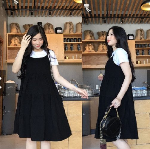 Váy 2 dây babydoll dáng bí phồng 2 lớp Đầm bầu áo dáng rộng cute dễ thương chubby T219G MONOKA