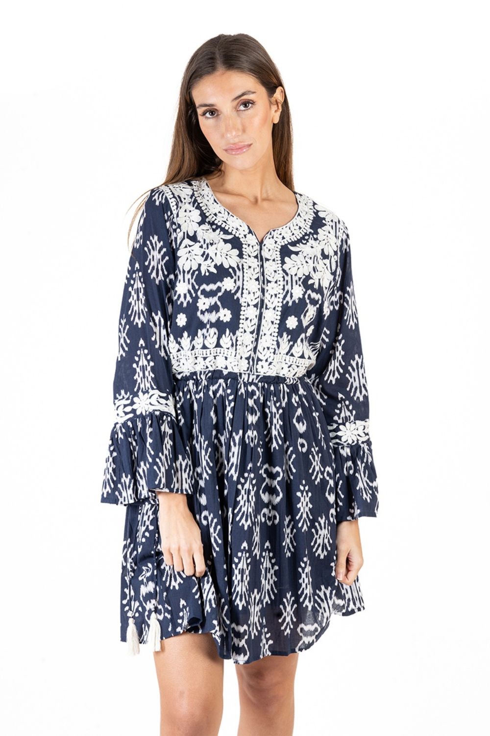 Đầm Boho Dài Tay Isla Bonita, chất lụa cao cấp, mềm mại, thun co giãn ở eo. Phom suông xòe rộng. Dài đầm 90cm (45x90) Phù hợp đi biển, dạo phố, công sở, hoặc dự