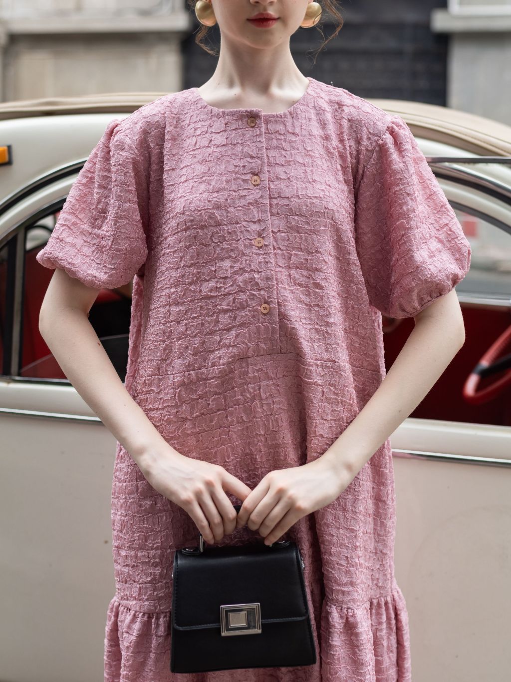ღ THÔNG TIN SẢN PHẨM: Tên sản phẩm: Đầm hồng cổ vuông tay phồng Chất liệu: Chất gấm trơn Chi tiết sản phẩm: không lót, không túi Thông số size: S,