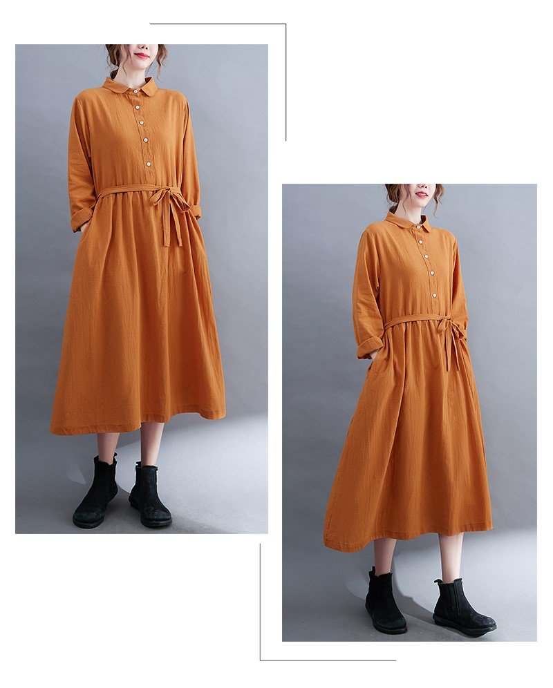 ✨Đầm linen suông nữ cổ sơ mi dài tay, tặng kèm dây thắt eo, thời trang nữ thu đông NH185