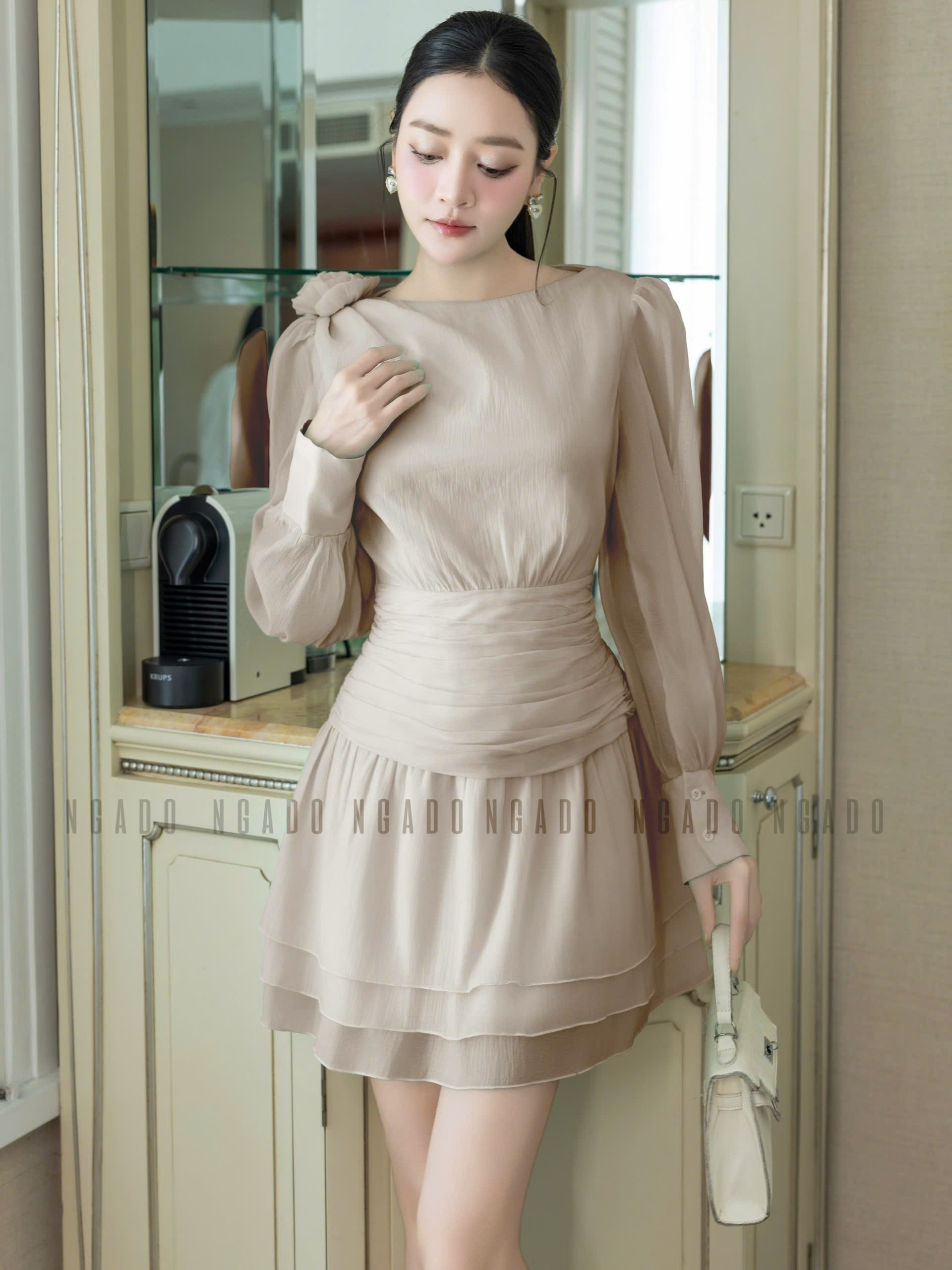 ✨Đầm nude voan đính hoa NGADO , đầm voan , đầm kiểu Nữ