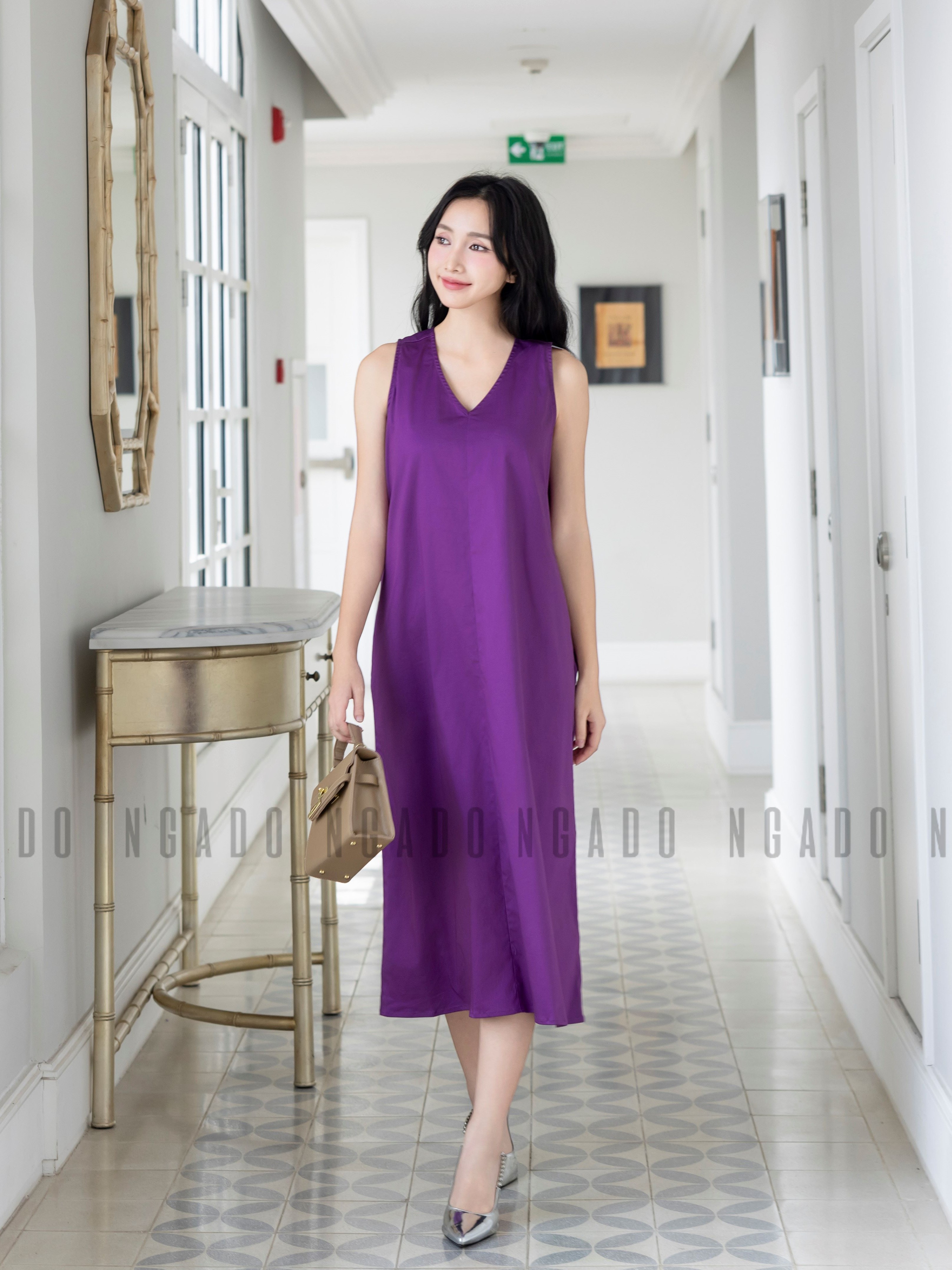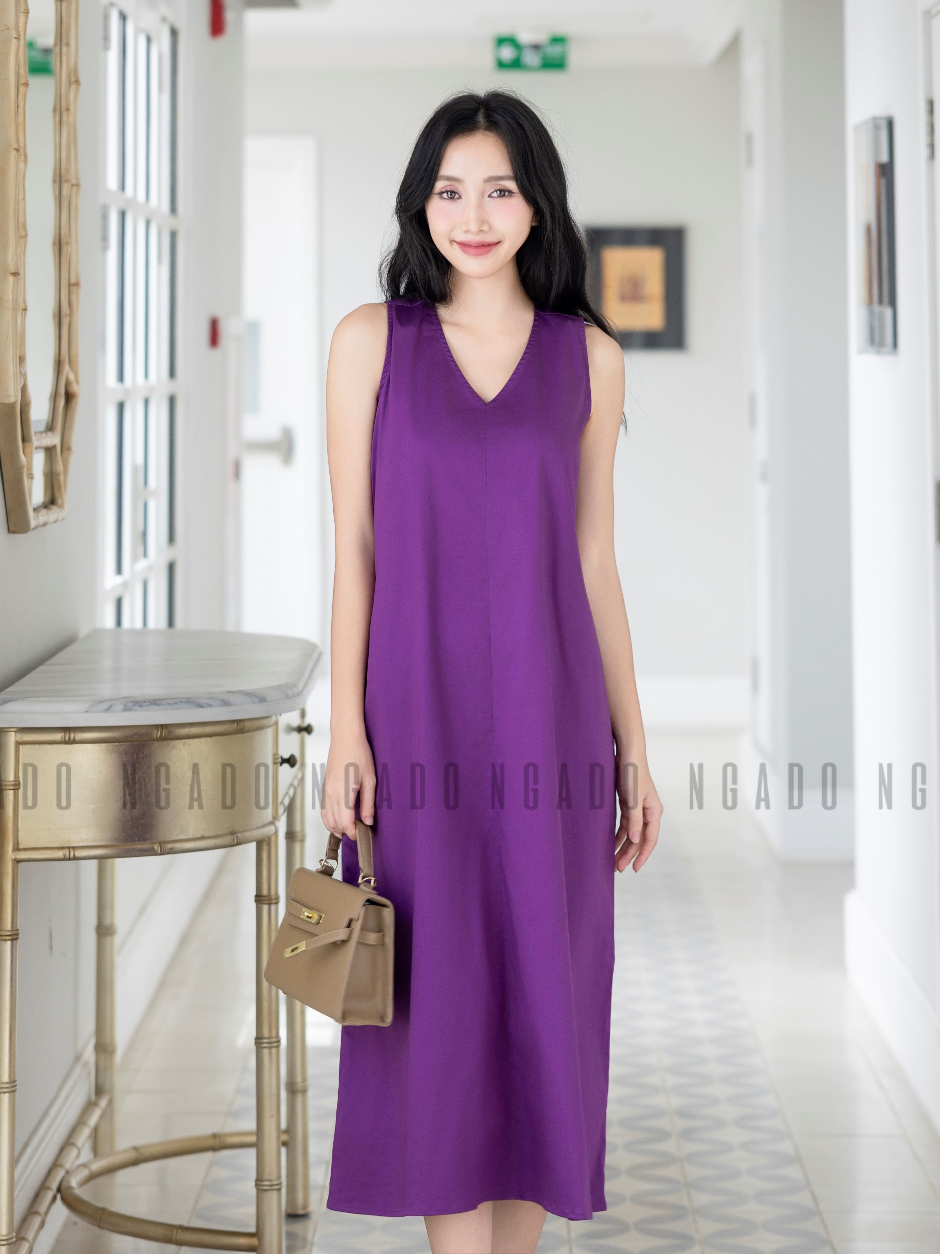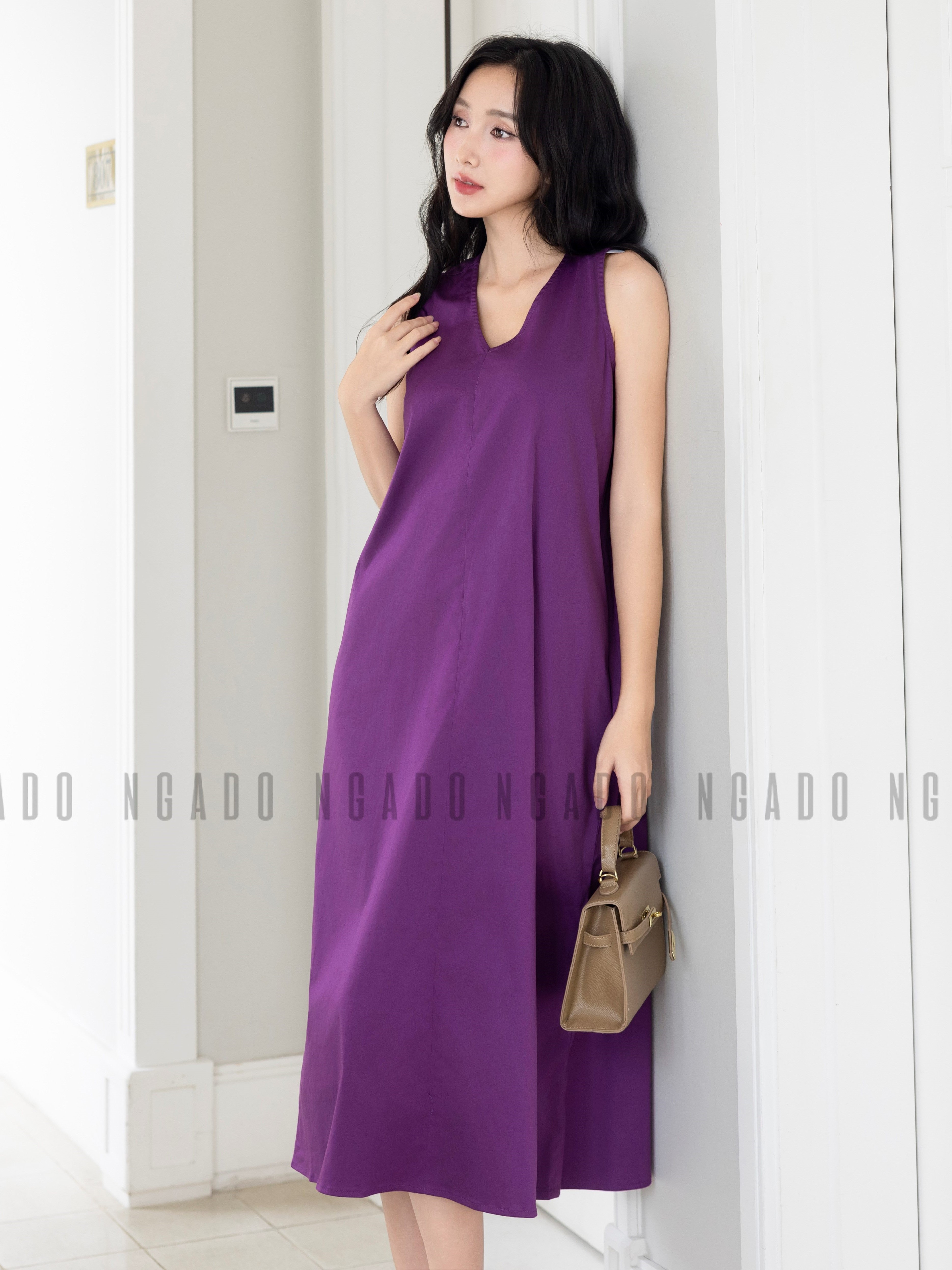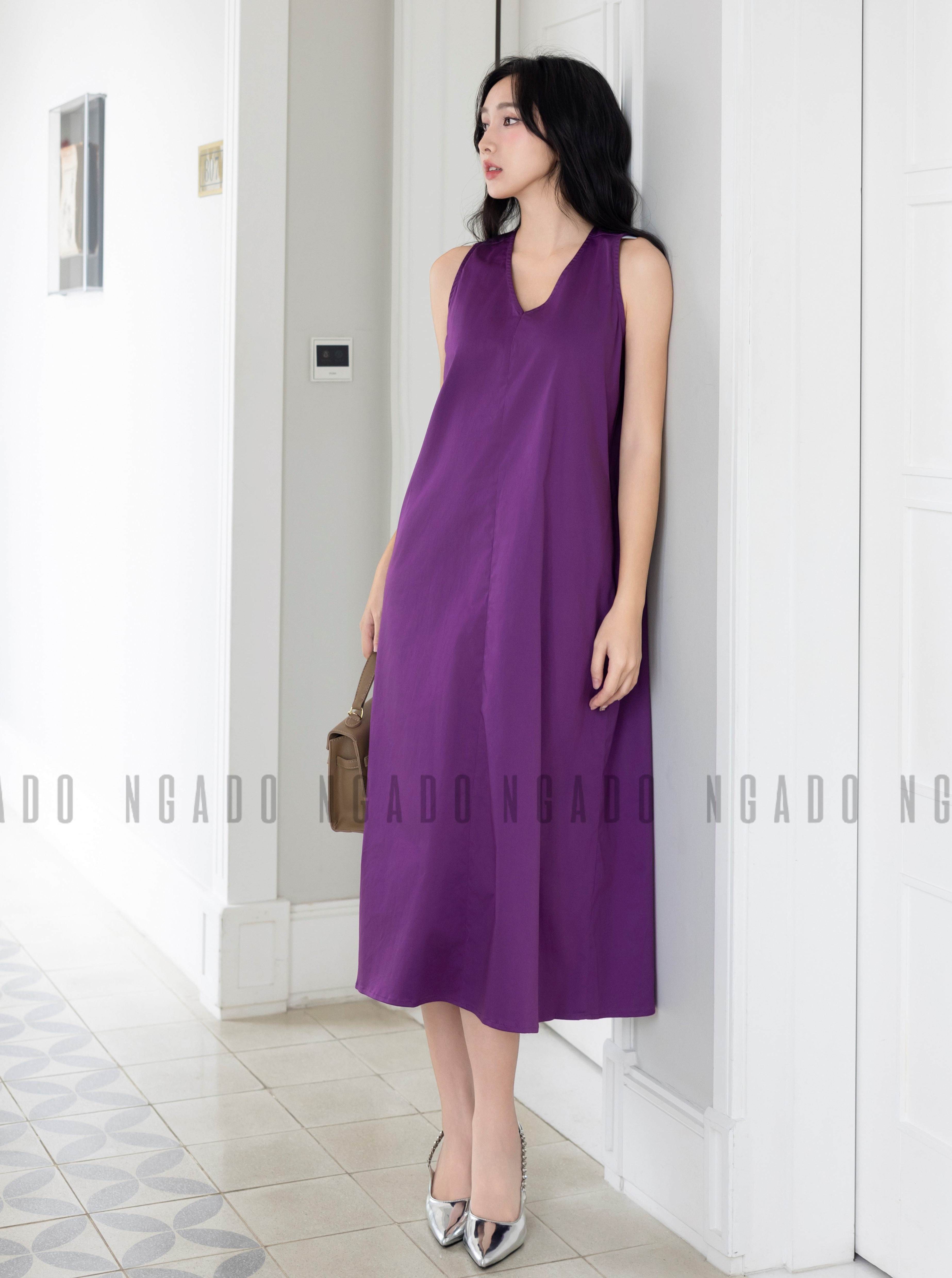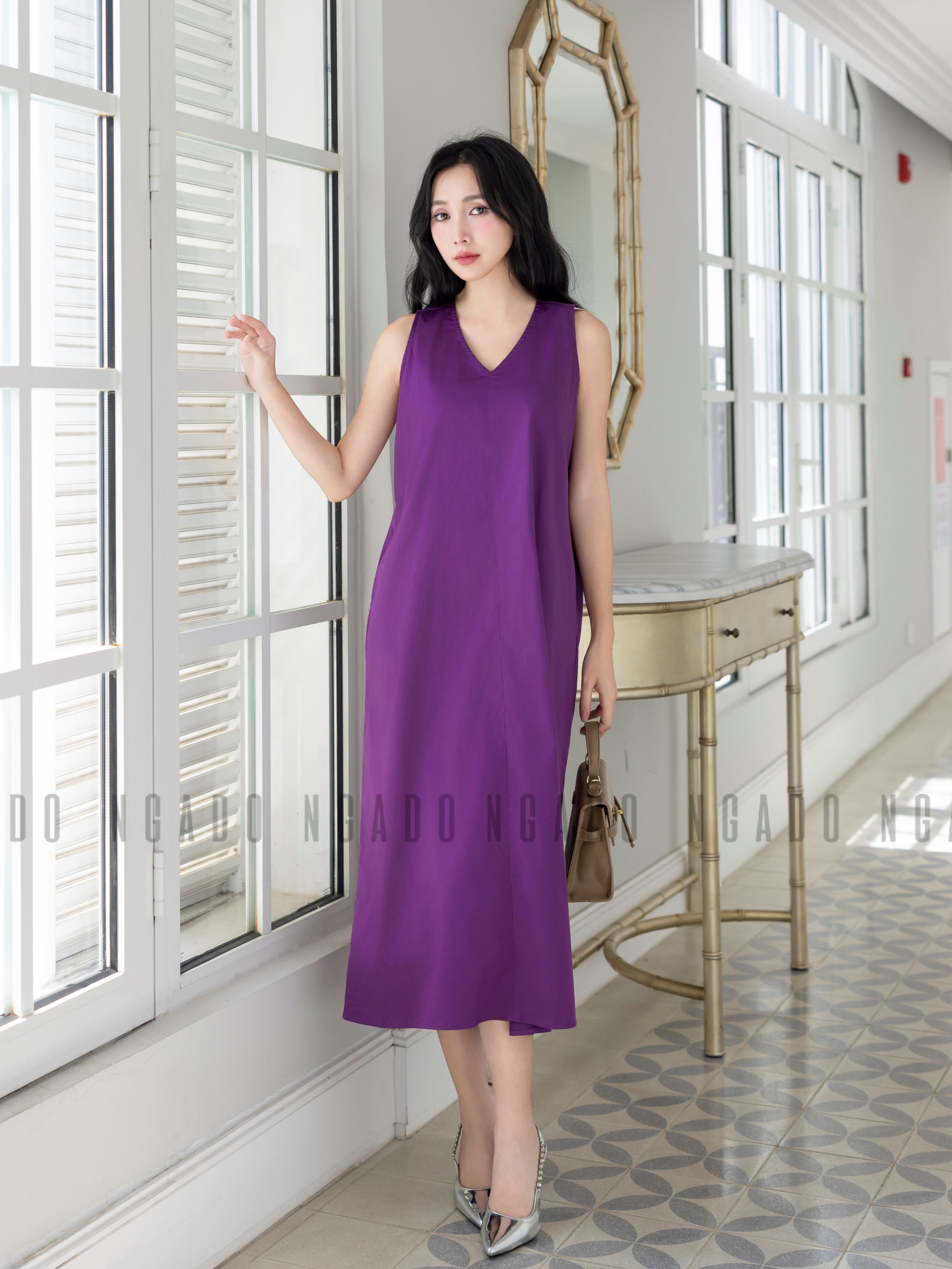 ✨Đầm tím cổ tim NGADO , đầm nữ , Đầm suông , Đầm thiết kế