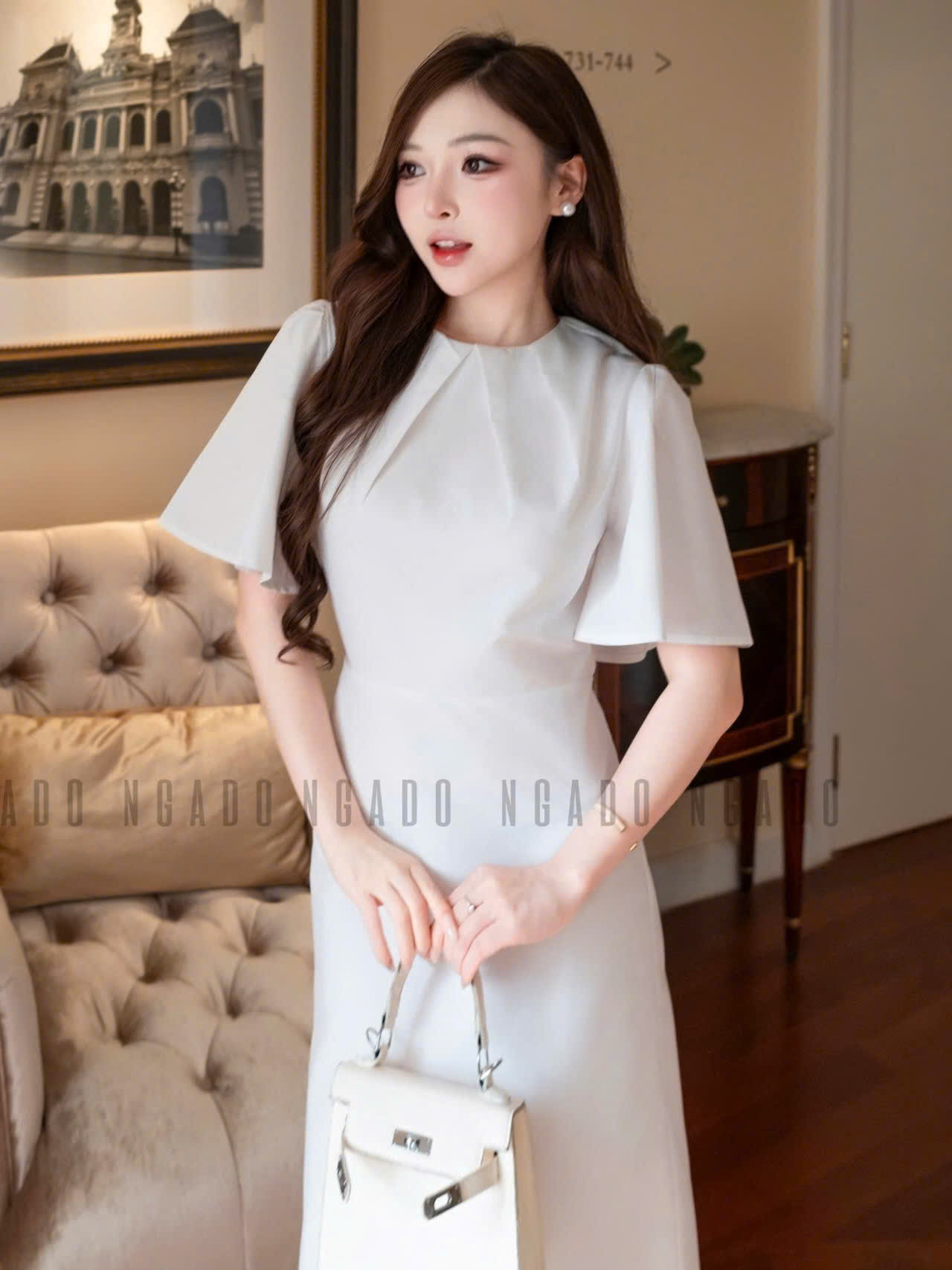 ✨Đầm trắng cổ xếp NGADO