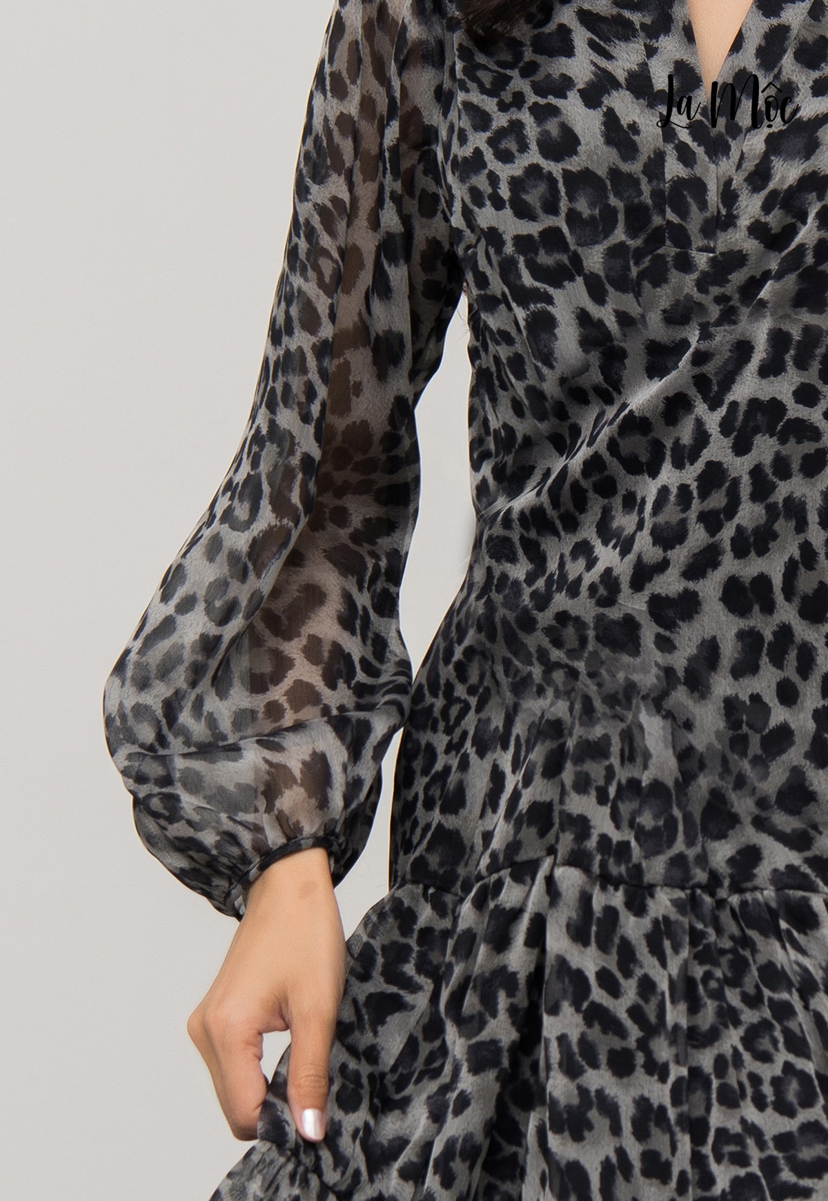 Đầm lụa xếp ly eo họa tiết DA BEO- AMELIA DRESS