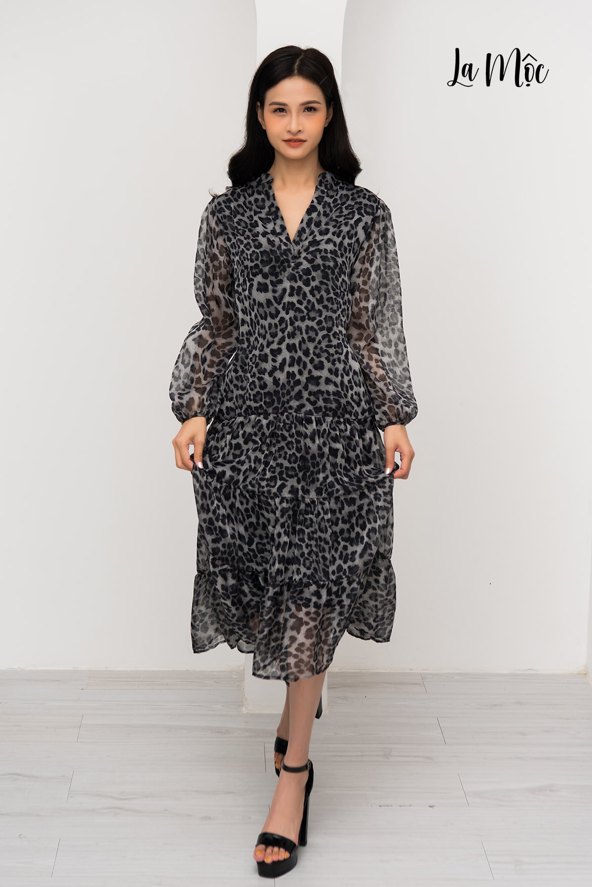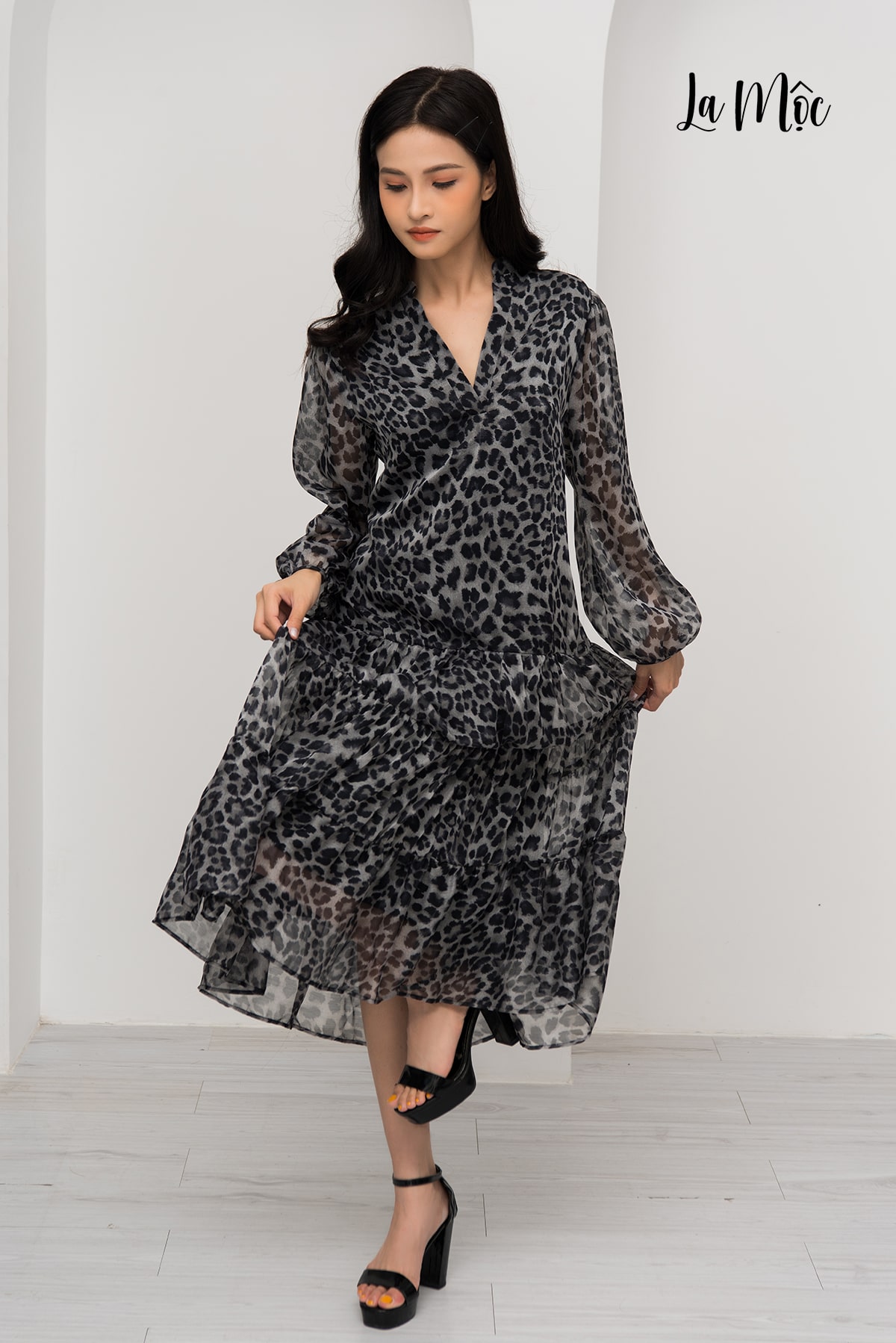 ✨Đầm Xòe Lụa Hàn Xếp Tầng Họa Tiết Beo Maxivic, La Mộc - LM72153