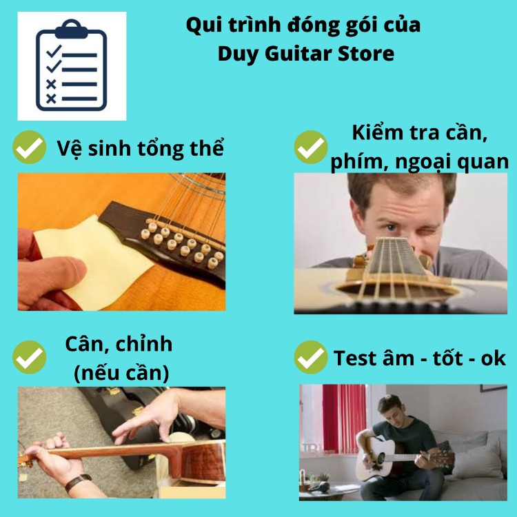 - Sản phẩm chất lượng của Duy Guitar Store - Đàn guitar acoustic làm từ Chất liệu cao cấp, sản phẩm handmade, khóa sắt chống gỉ tốt - Âm thanh đảm bảo tốt trong tầm