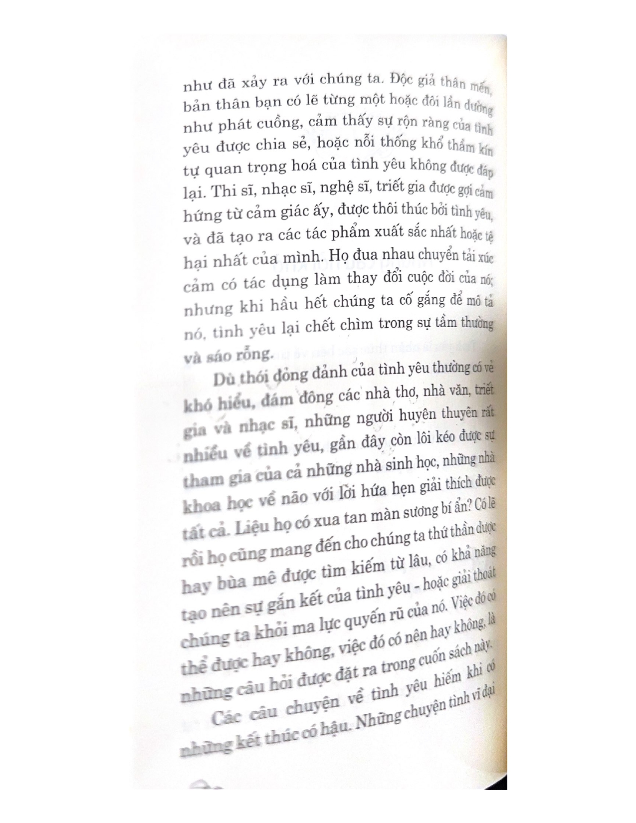 Trong sách Dẫn luận này, Ronald de Sousa khảo sát những tư tưởng triết học về tình yêu. Dựa trên vô số tư liệu lịch sử và những thành tựu mới nhất của khoa học, ông bình luận các quan điểm chính yếu và cho thấy rằng tình yêu phức tạp hơn rất nhiều so với suy nghĩ của chúng ta.