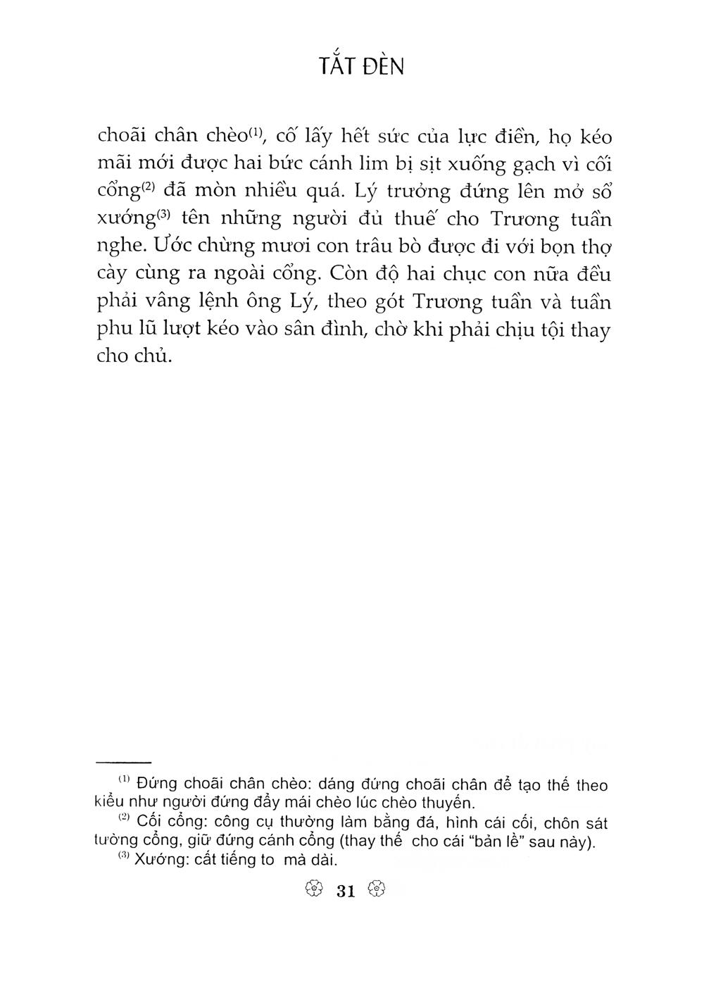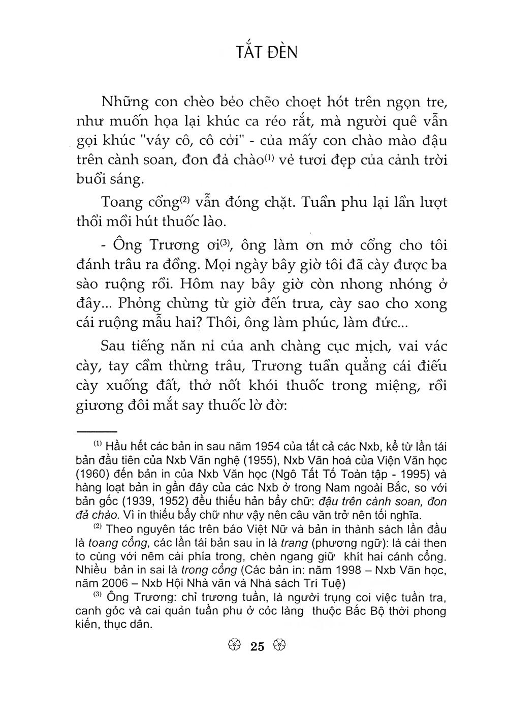 "Theo tôi tiên tri, thì cuốn Tắt đèn còn phải sống lâu thọ hơn cả một số văn gia đương kim hôm nay. Chị Dậu, đích là tác giả Ngô Tất Tố hóa thân ra mà thôi. Chị Dậu là cái đốm sáng đặc biệt của Tắt đèn. Nếu ví toàn truyện Tắt đèn là một khóm cây thì chị Dậu là cả gốc cả ngọn cả cành, và chính chị Dậu đã nổi gió lên mà rung cho cả cái cây dạ hương Tắt đèn đó lên."