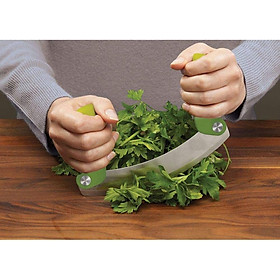 Lưỡi dao bằng thép không gỉ sắc bén để cắt nhỏ các loại thảo mộc tươi và tỏi Thiết kế tay cầm đôi giúp ngón tay tránh xa lưỡi dao khi cắt Hành động lắc