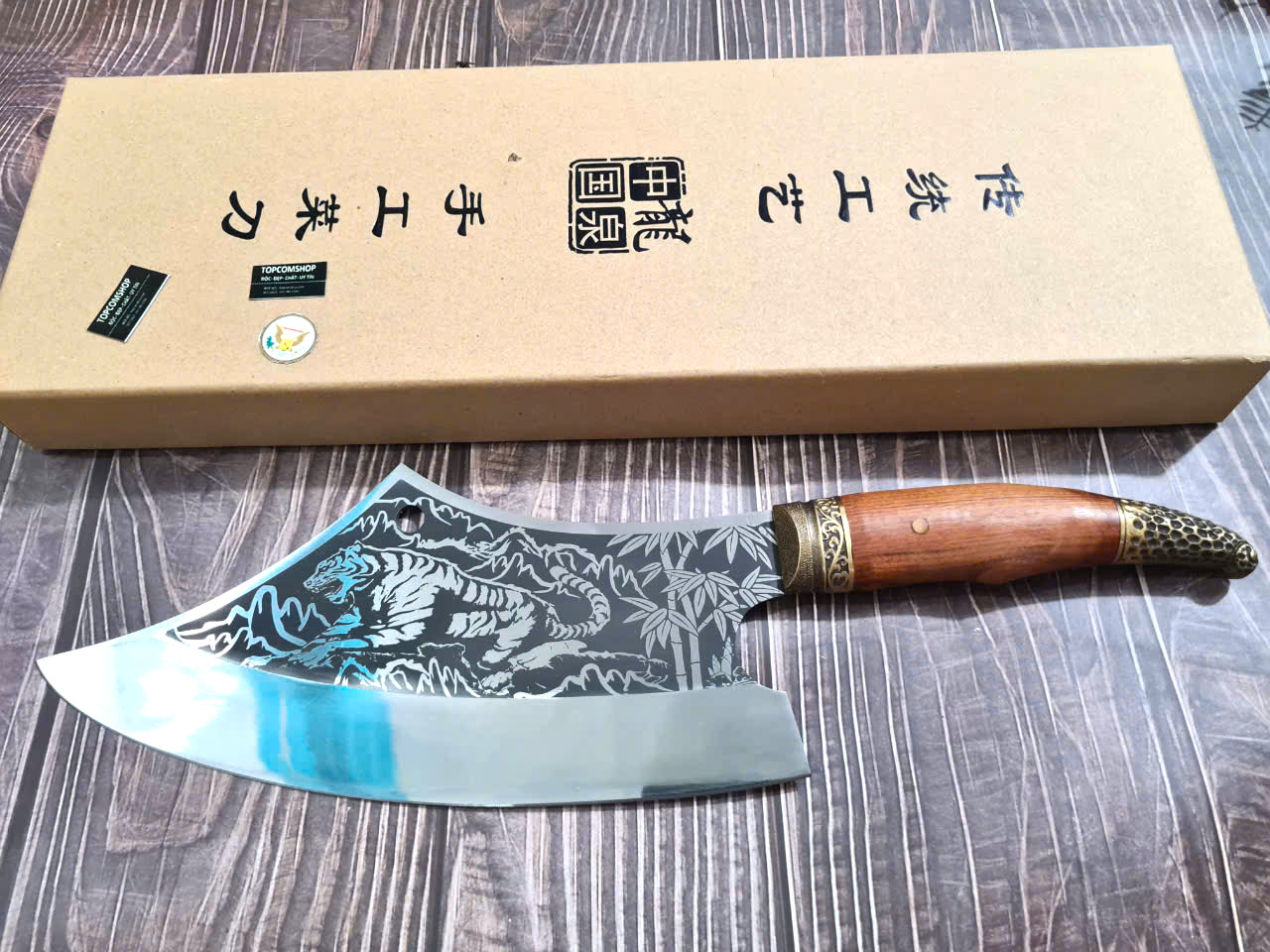 Dao Phúc Sen Chặt Xương Cán Cẩm Khâu Đồng - Kích thước: lưỡi: 24cm, cán: 13cm, rộng: 10cm, dầy: 0,5, trọng lượng: 700g - 900g - Chức năng: sử dụng chuyên chặt xương ống, xưởng