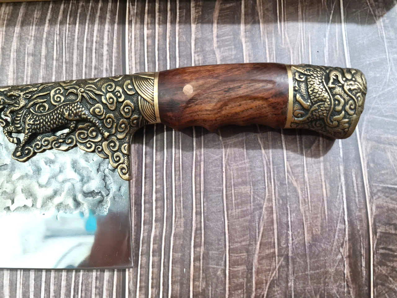 DAO PHÚC SEN - Dao Thái 22 cán mun khâu đồng đỏ - Chức năng: chuyên thái thịt và rau củ - Kích thước: Lưỡi: 22cm, cán: 12cm, rộng: 7,5cm, dầy: 1ly, trọng lượng: 280g