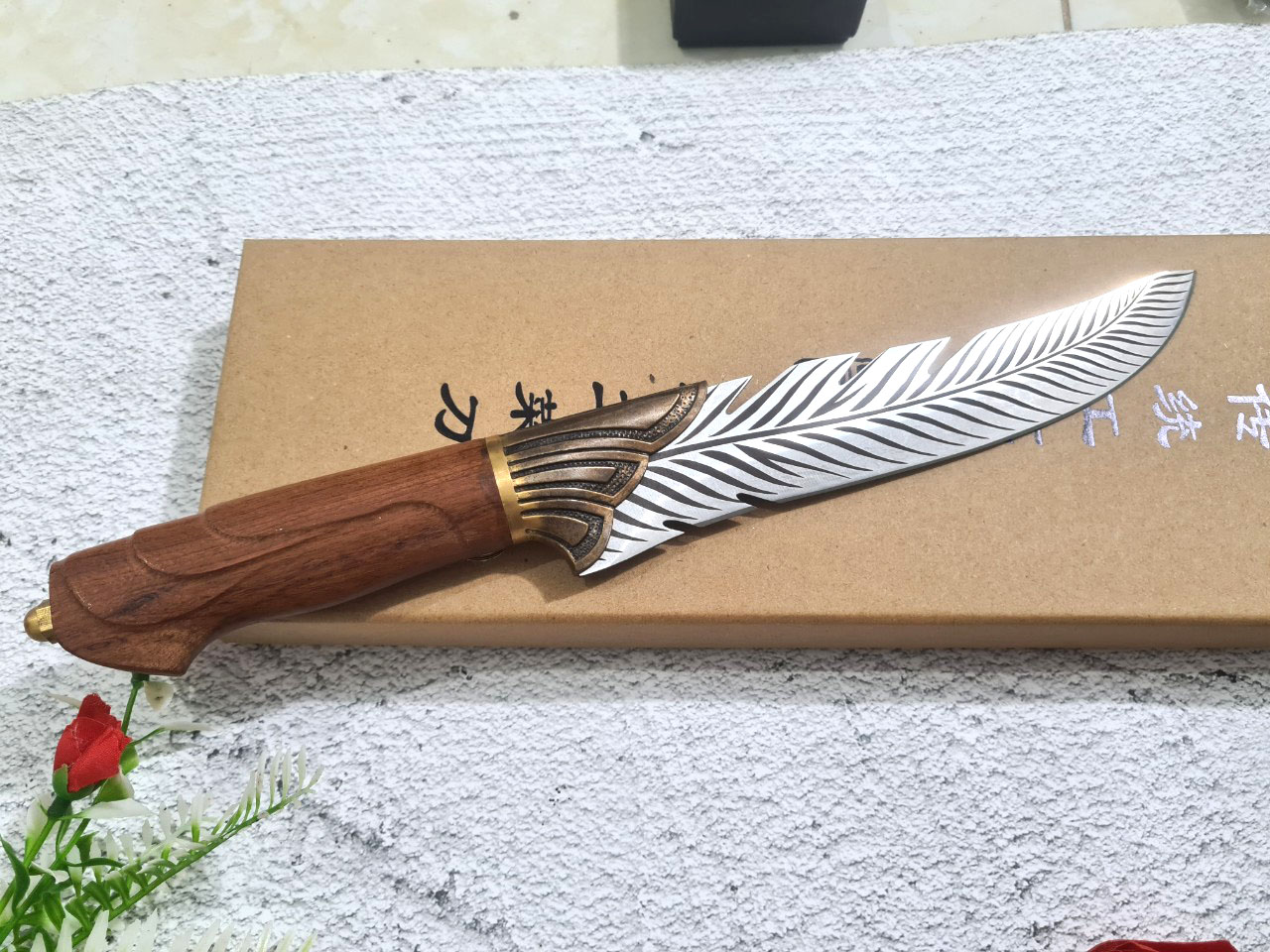 THÔNG TIN SẢN PHẨM TỔNG DÀI : 33cm, LƯỠI: 16.5cm,CÁN: 12cm ,RỘNG : 3,6cm, dày: 2.5mm, CHẤT liệu lưỡi: 7Cr17MOV (thép 7 crom 17 molypden vanadi) Chất liệu CÁN: gỗ cẩm lai, Các phụ kiện ( khâu ) : đồng thau NẶNG : 3 lạng