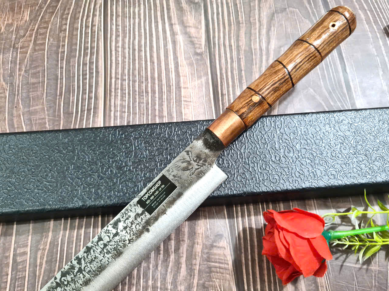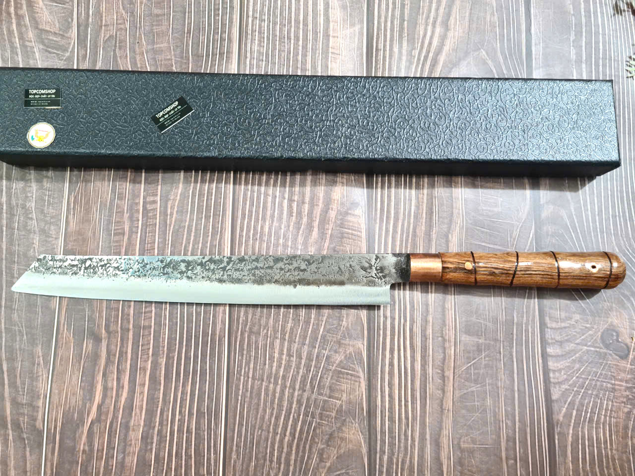 Dao Phúc Sen bản Takohiki - Kích thước: lưỡi: 24cm, cán: 12cm, rộng: 3.5cm, dầy: 2.5 ly, trọng lượng: 200g - Chức năng: sử dụng chuyên thái thịt ,cá, rau củ và các thực phẩm