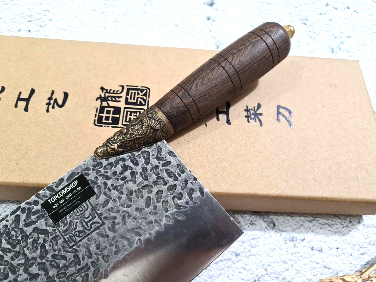 Dao Phúc Sen Chặt - Thái Bản 10 Cán Cẩm Khâu Đồng - Kích thước: lưỡi: 22cm, cán: 13cm, rộng: 10cm, dầy: 3ly , trọng lượng: 600g - Chức năng: sử dụng chuyên chặt gà