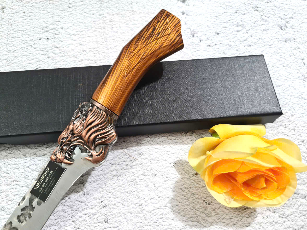 D SỐ 1 : TỔNG DÀI : 29cm, LƯỠI: 14cm,RỘNG : 4.5cm, dày: 3mm, NẶNG : 1.5 lạng, CHẤT liệu lưỡi: 4Cr13MOV (thép 4 crom 13 molypden vanadi).Chất liệu CÁN: nhựa abs xịn . khâu đầu rồng và chuôi bằng thép 4cr13