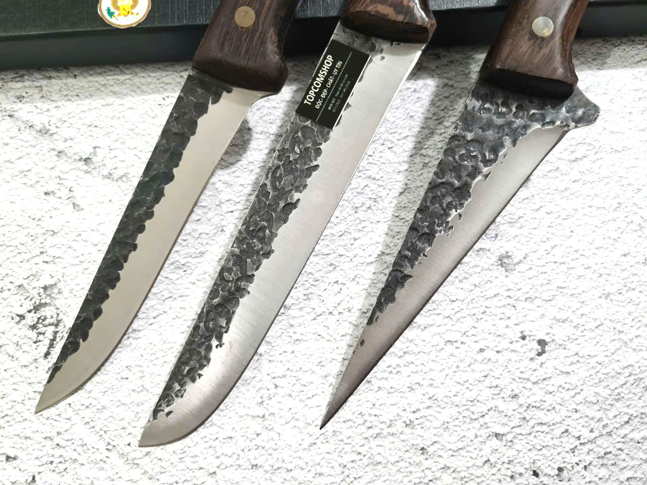 Xưởng rèn dao Việt test dao trả khách, bộ dao làm bếp, dao chặt, dao thái, dao lọc, dao mèo đi rừng