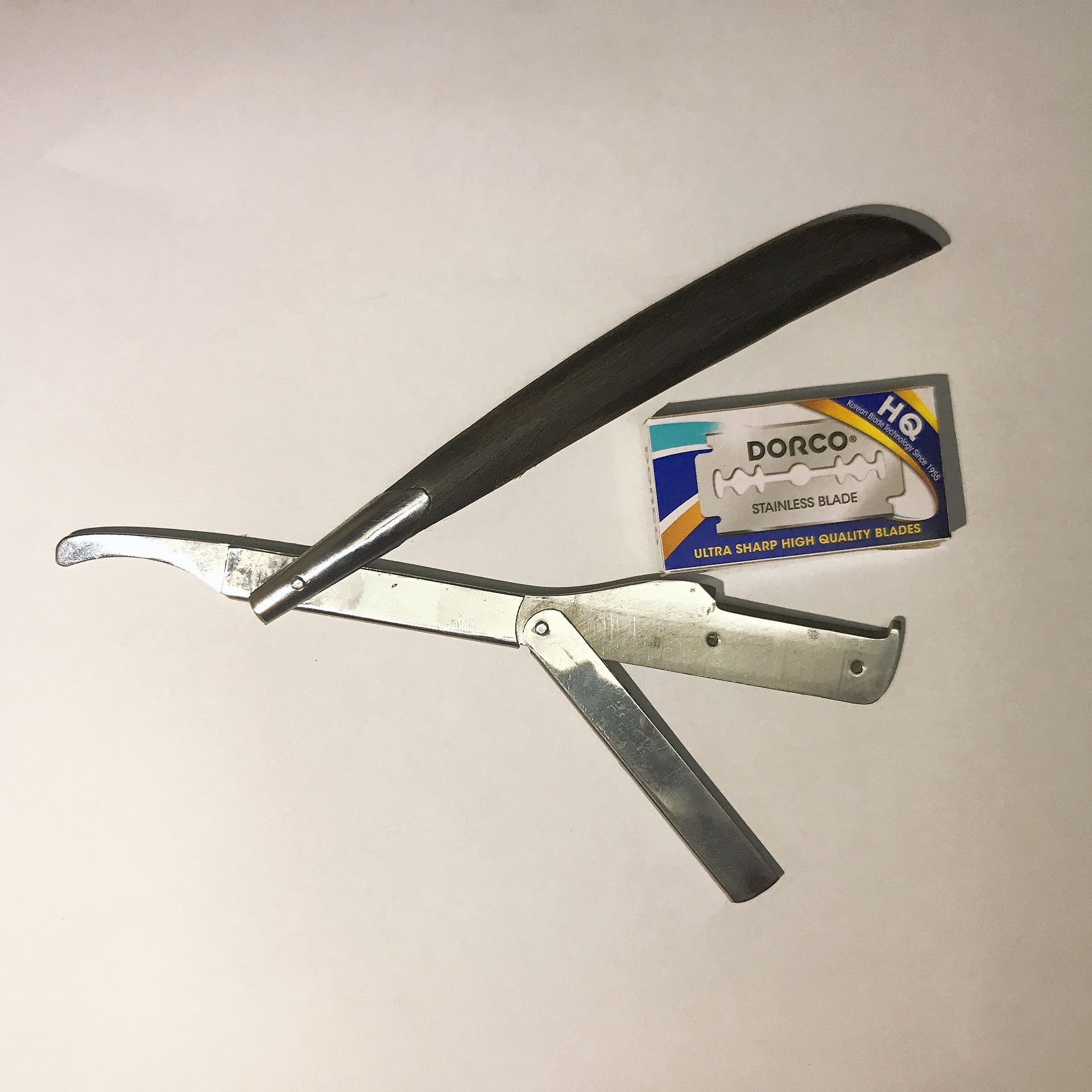 Dao Cạo Râu Tóc Mặt Tỉa Chân Mày Cán Gỗ Sơn Đen Bọc Thép Bền Chắc Hơn