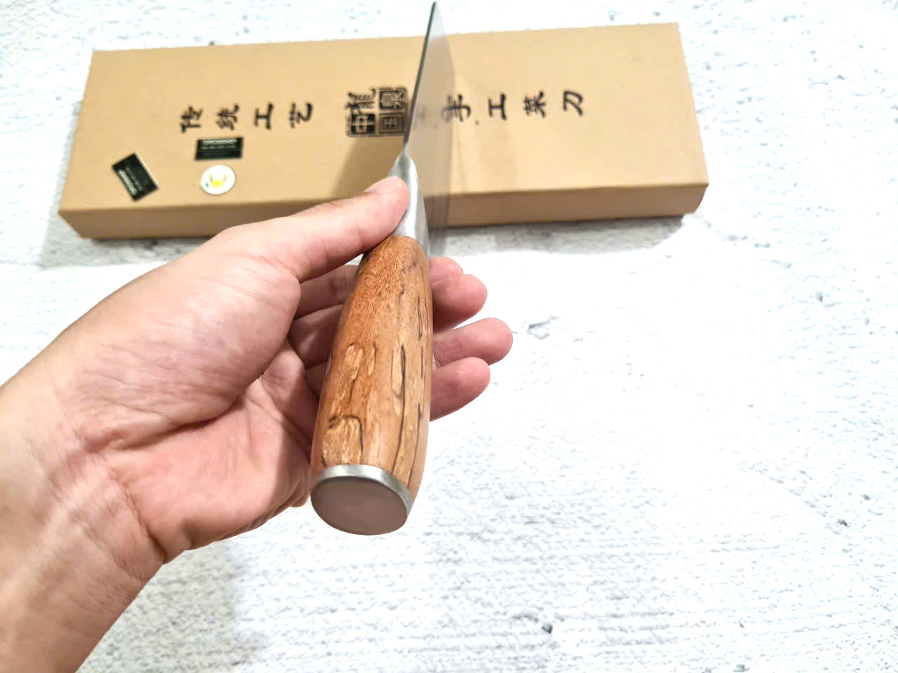 - Chức năng: thái thịt, rau củ quả - Kích thước: Lưỡi: 17cm, cán: 12cm, rộng: 5cm, dầy: 1ly, trọng lượng: 200g - Cán : Gỗ cẩm chỉ, Chốt, Khâu ĐỒNG ĐỎ , keo liên
