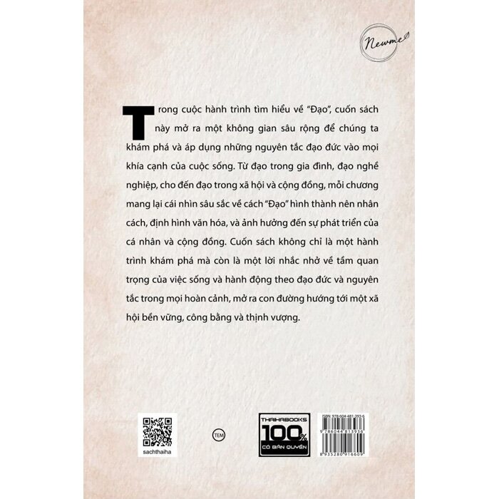 Cuốn sách này, thông qua việc khám phá và phản ánh về “Đạo”, không chỉ giúp chúng ta nhìn nhận lại giá trị truyền thống mà còn hướng dẫn cách thể hiện và duy trì những giá trị đó trong mọi khía cạnh của cuộc sống.