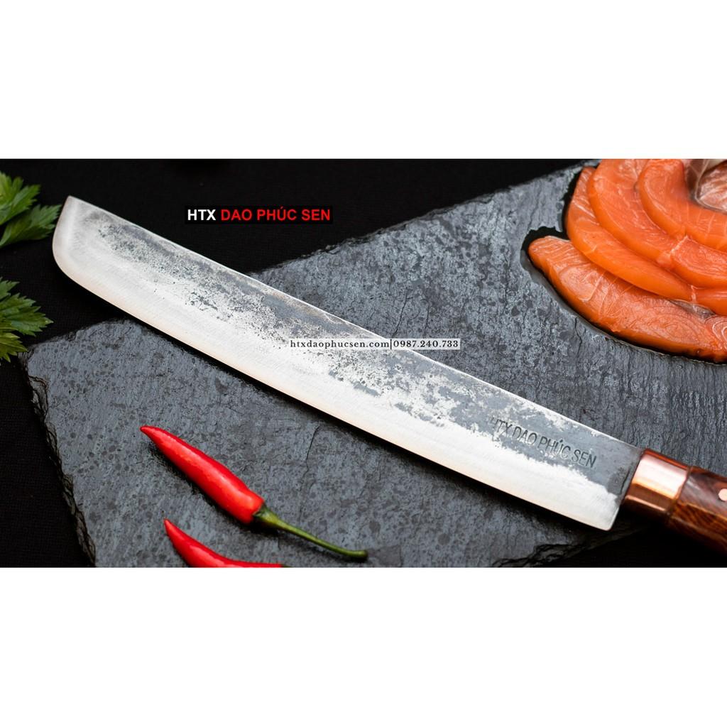 Dao Phúc Sen bản Takohiki - Kích thước: lưỡi: 24cm, cán: 12cm, rộng: 3.5cm, dầy: 2.5 ly, trọng lượng: 200g - Chức năng: sử dụng chuyên thái thịt ,cá, rau củ và các thực phẩm