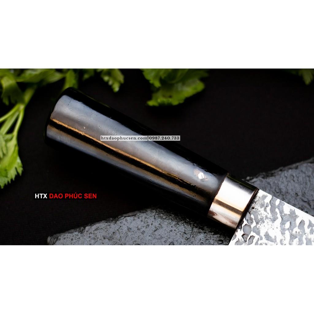 Dao Phúc Sen bản Takohiki - Kích thước: lưỡi: 24cm, cán: 12cm, rộng: 3.5cm, dầy: 2.5 ly, trọng lượng: 200g - Chức năng: sử dụng chuyên thái thịt ,cá, rau củ và các thực phẩm