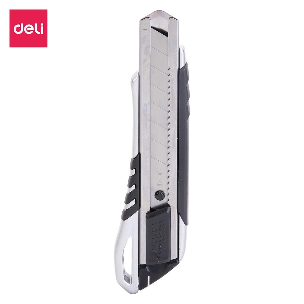 ✨Dao rọc giấy Deli Vỏ Kim Loại cao su mềm chống trượt, loại 8 lưỡi khóa tự động E2057