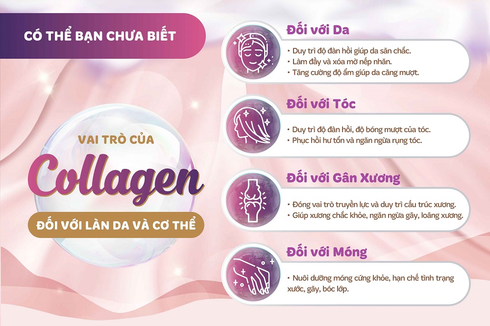 Mô tả Collagen là protein dạng sợi có cấu trúc khá phong phú, chiếm 30% tổng lượng protein hiện có trong cơ thể và đóng vai trò quan trọng đối với sức khỏe vì collagen