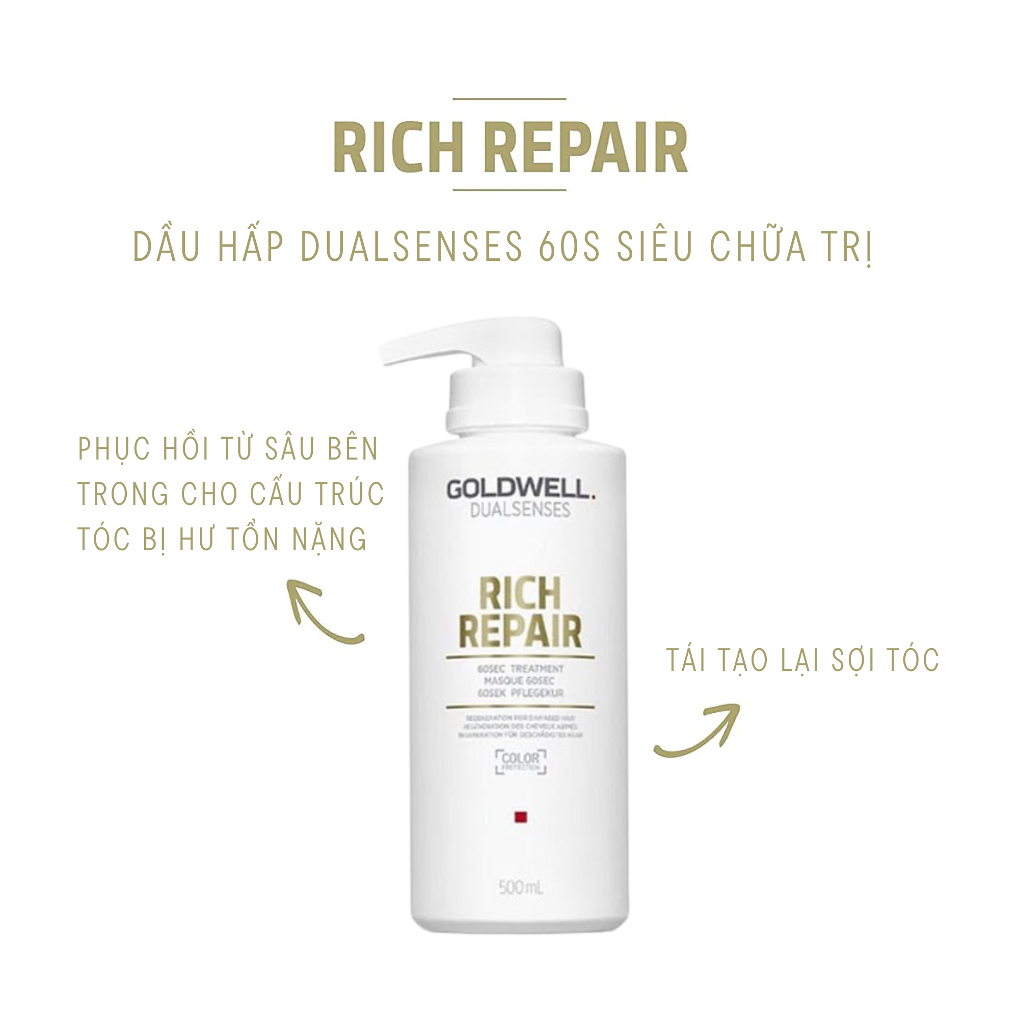 Dầu Hấp 60s Phục Hồi Tóc Hư Tổn Goldwell Rich Repair Phục Hồi Tóc Khô Xơ, Hư Tổn, Chẻ Ngọn Lên Tới 98% - Phù hợp với tình trạng tóc: + Tóc hư tổn trung