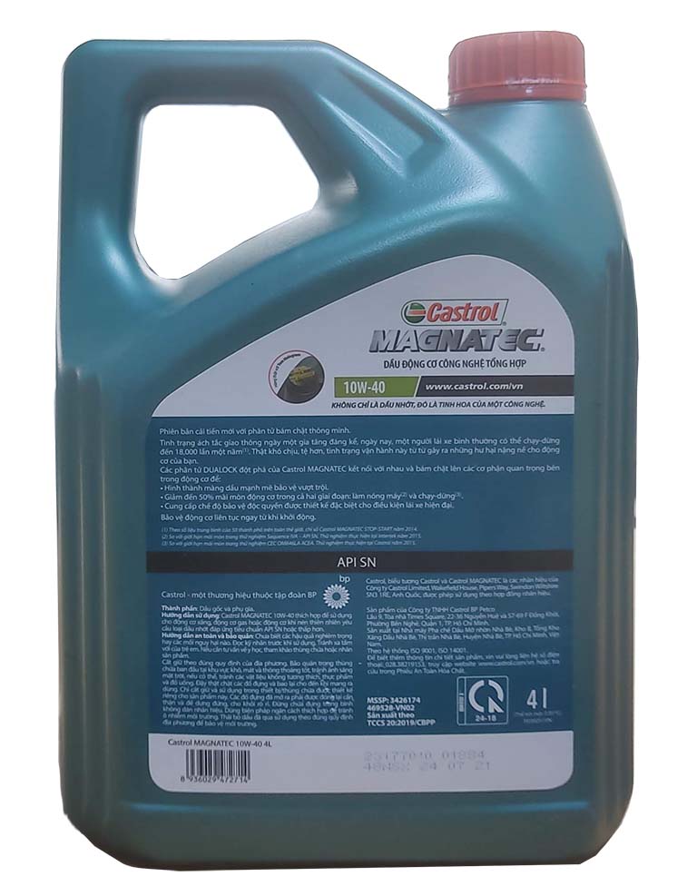 Mua tại TiktokCASTROL MAGNATEC: BẢO VỆ LIÊN TỤC NGAY TỪ KHI KHỞI ĐỘNG Castrol Magnatec mới là giải pháp hoàn hảo cho xe hơi khi di chuyển trong đô thị. VẤN ĐỀ Tình trạng ách tắc giao thông ngày một gia tăng đáng kể, ngày nay một người lái xe bình thường có thể chạy-dừng đến 18.000 lần một năm. Thật khó chịu, tệ hơn, tình trạng vận hành này từ từ gây ra những hư hại nặng nề cho động cơ của bạn. GIẢI PHÁP Các phân tử đột phá DUALOCK của Castrol MAGNATEC kết nối với nhau và bám chặt lên các cơ phận quan trọng bên trong động cơ, hình thành màng dầu mạnh mẽ bảo vệ vượt trội, giảm đến 50% mài mòn động cơ trong cả hai giai đoạn: làm nóng máy và chạy-dừng. LỢI ÍCH Bảo vệ liên tục ngay từ khi khởi động TIÊU CHUẨN KỸ THUẬT