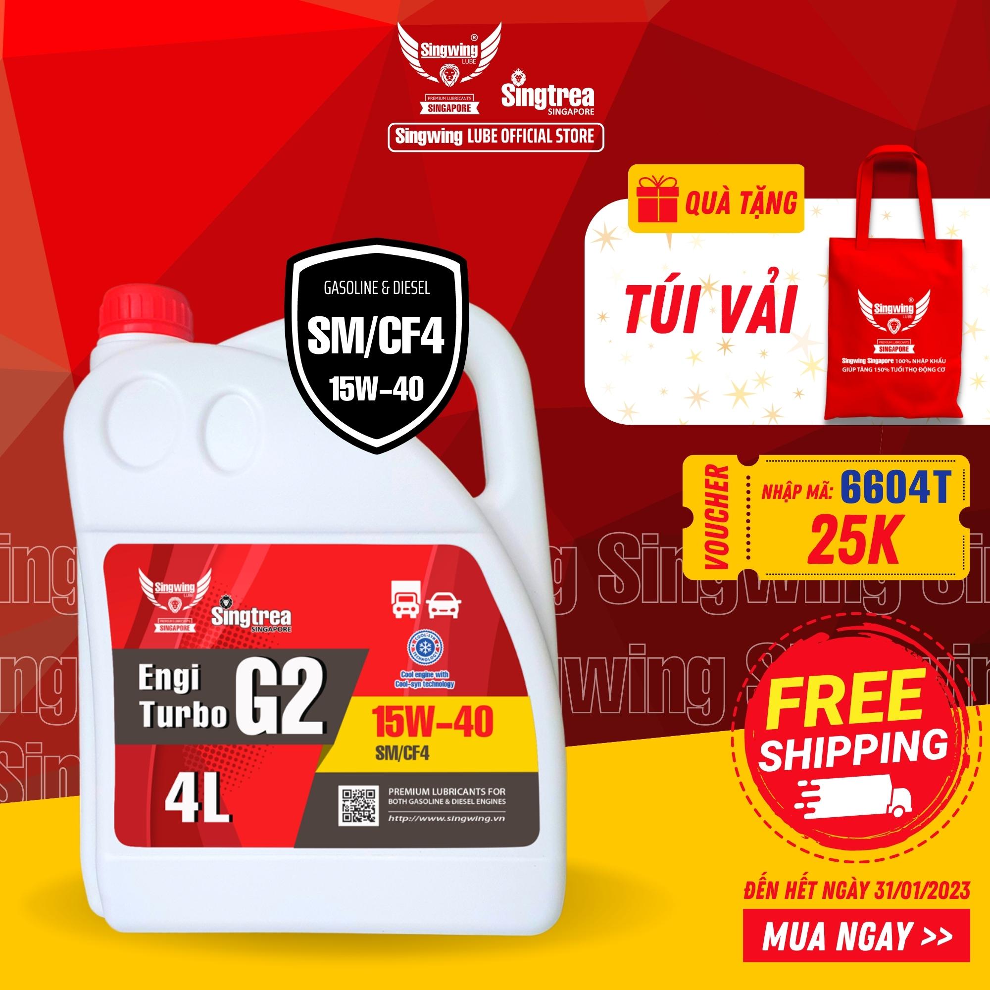 ✨Dầu nhớt Singtrea Engi Turbo G2 15W-40 SM/CF4 4L dành cho xe ô tô