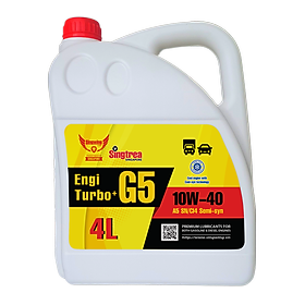Dầu nhớt Singtrea Engi Turbo+ G5 10w-40 SN/CI4 Semi-Synthetic 4L dành cho xe ô tôDầu nhớt Singtrea Engi Turbo+ G5 10w-40 SN/CI4 Semi-Synthetic 4L dành cho xe ô tô